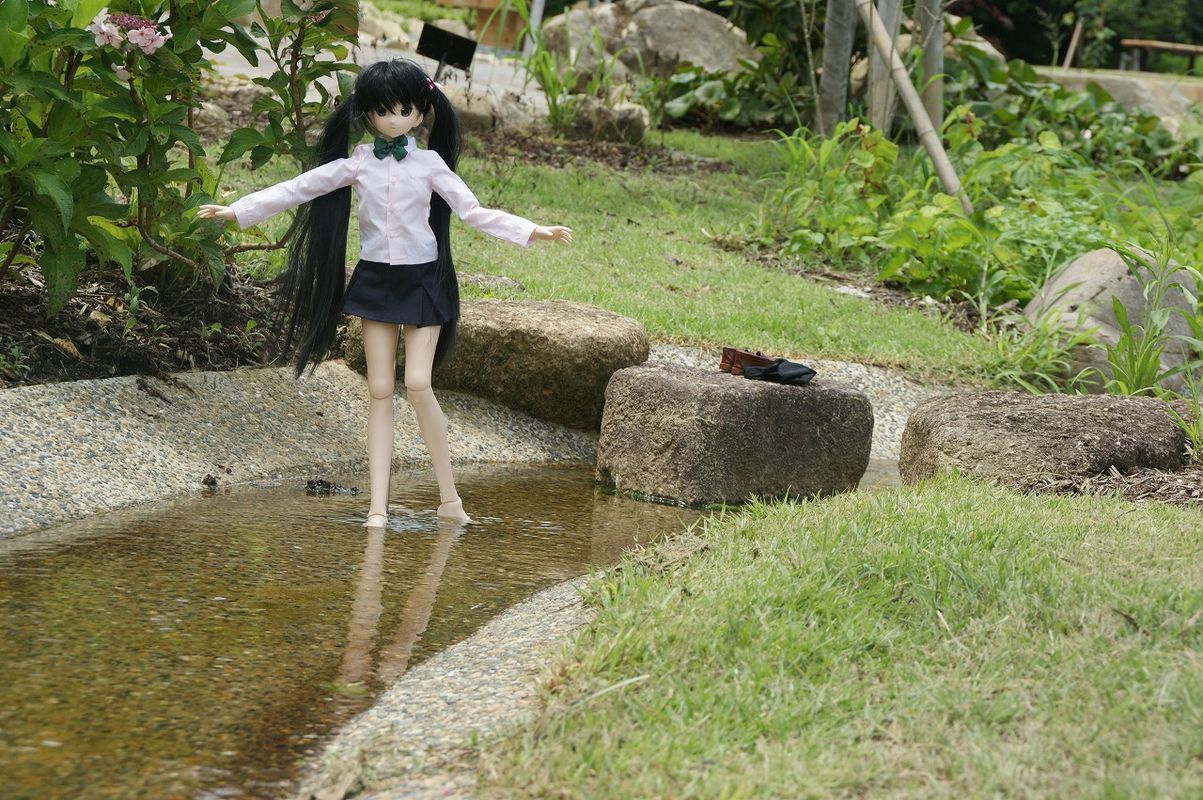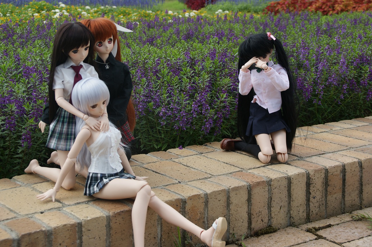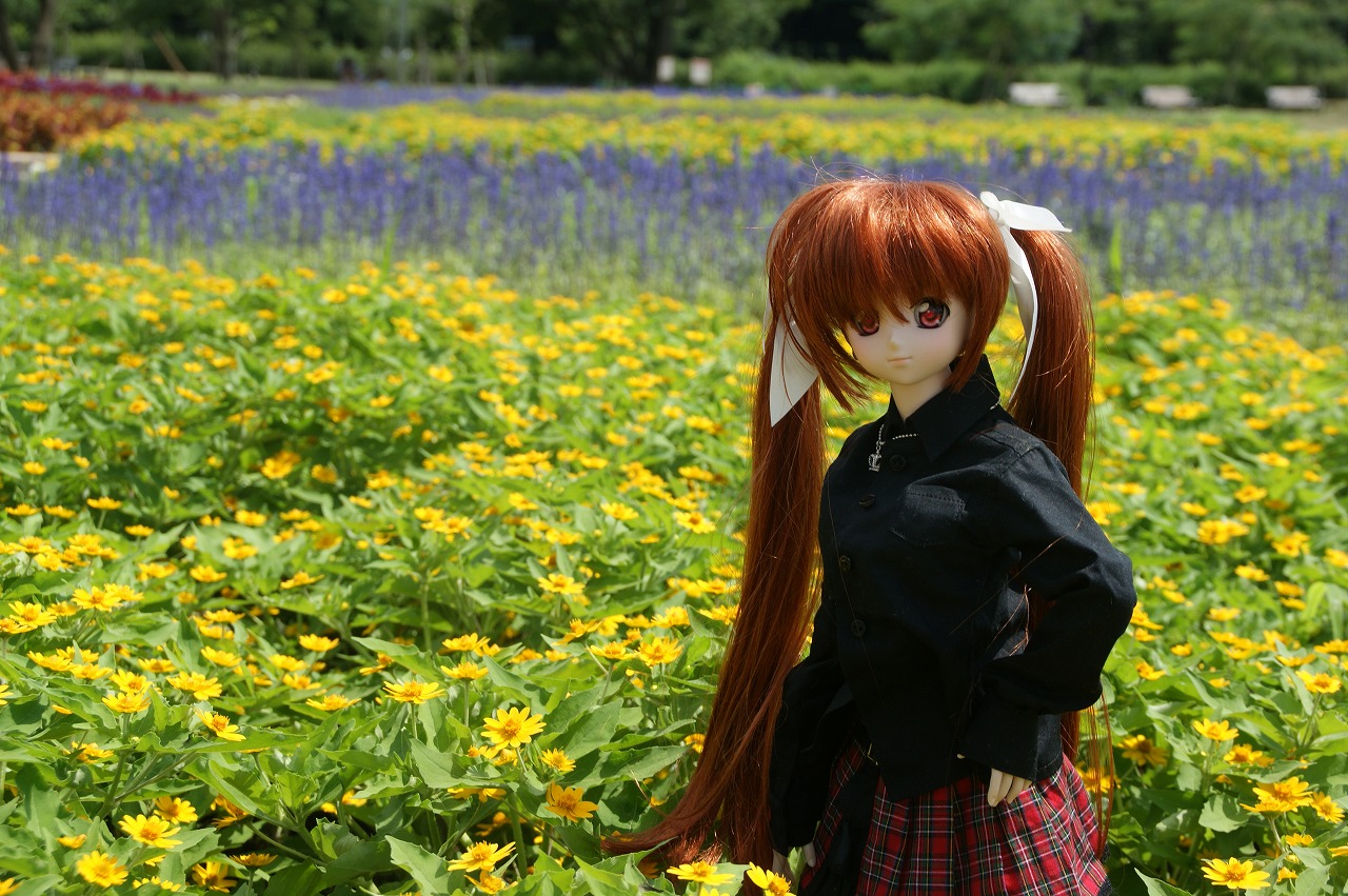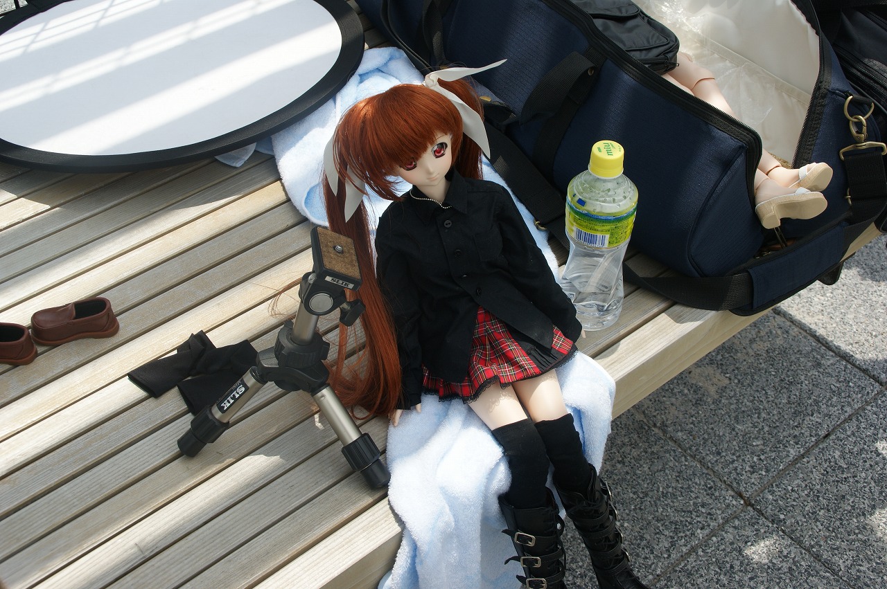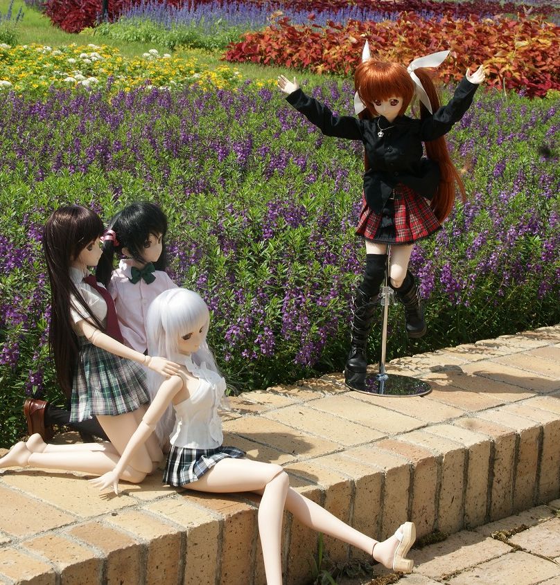 7/17、フラワーパーク江南に発起人の ledmb4daさんとえすけーしーさんとわっちで 野外撮影会をおこなってきました。 フラワーパークと言う割にはそれほど大きく花壇のスペースを確保しているわけではなく 広い芝生、噴水、散歩道など ゆっくりと過ごせるような印象の公園ですね。 よっこらせ♪ 今回の面子は左から えすけーしーさんのところの由綺嬢、 ledmb4daさんの唯姫、理奈様、 わっちの あず澪、なのはさんの五人です♪ こちらは、準備中の唯様。 座ってるだけで雰囲気が違うのですが・・・・・いったい? なのはさんで軽く撮影♪ この日はあいにくの曇り空。軽く雨が降りそうな感じですね。 こんな天気ではテンションがあがらない!と、ledmb4daさんはのたまわってましたが、 初っ端はらポ-ズ決めてパシャパシャ。 え?テンションあがらないのにこれですか? もし晴れたら、赤ザク並みに3倍の能力が発揮されるのでしょうか・・・・・ 失礼ながらもなのはさんと一緒に撮影させていただきました♪ こちらは待機中の由綺嬢。 まだまだ先は長いのだから。との余裕が感じられますね♪ 少し明るくなったところで公園内をぐるぐる。 すると・・・・・ あず澪が川のせせらぎに惹かれて言ったようです♪ あず澪 「・・・・・・・・・・・・・」 もそもそ。 ちゃぷん♪ あず澪 「冷たくて気持ちいいです」 ぱしゃぱしゃぱしゃ・・・・・・だ、大丈夫でしょうか・・・・・ そんな あず澪さんを高みの見物する由綺嬢。 ・・・・・・・・由綺嬢もいつの間にか裸足ですw さらさらさら・・・・・・・ 水の音が涼しげに聴こえてきそうですね♪ こちらは、なのはさんと由綺嬢とで記念撮影♪ ぱしゃり。 あず澪 「お花も綺麗です」 気温もこの頃から高くなってきたので、 なのはさんは日陰で休憩中。 由綺嬢は水場で。 あず澪は日陰の芝生にごろん♪ なのはさん 「なかなかすっきりしない天気ですね。」 唯姫もこてん♪ 隣のギー太もさらっといいポジション。 そんなこんなでお昼に突入。 天気悪いままなら、移動しますか~?という話をしながら休憩。 ledmb4daさんもえすけーしーさんも少食でした。 ぐぎゅるるるるるうるるるうぅ。 といった感じでいっぷくしてると、天気がだんだん良くなってきました。 昼からは入り口にある花壇にて再スタートです♪ 限られたスポットながら、美しい花々。可愛い娘たち♪ 理奈様を中心に由綺嬢、あず澪で記念撮影。 すると・・・・・ なのはさん 「私も混ぜてー!!!」 あず澪 「え?何なんですか!?」 びた~~~~んっ! あず澪 「しくしくしくしく・・・・・・」 こんな感じで、なのはさんにポジションチェンジが・・・・・・ 傍から見るとひどい惨劇です・・・・・ このあと、なのはさんはしっかり謝って仲直りをしています。 場所をかえて。 日差しがなかなか強烈です。 なのはをいつか空に飛ばしたい・・・・・・ なのはのN♪ 由綺ちゃんと一緒♪ これ、日時計なんです。 夏のお嬢さん的な雰囲気♪ 休憩も必要ですね・・・・ はしゃぎまわっているとお月様もひょっこり♪ 夕暮れ時になっていきます・・・・。 「綺麗な夕日だな・・・・・・」 「はい。とても美しゅうございます!」 日が暮れていくまでじっくり見るなんて事はここのところ無かったものだから感動でした。 とても有意義な時間を過ごさせていただいた一日でした。 普段忘れてることってこういったことなのかな~・・・・・・ PR