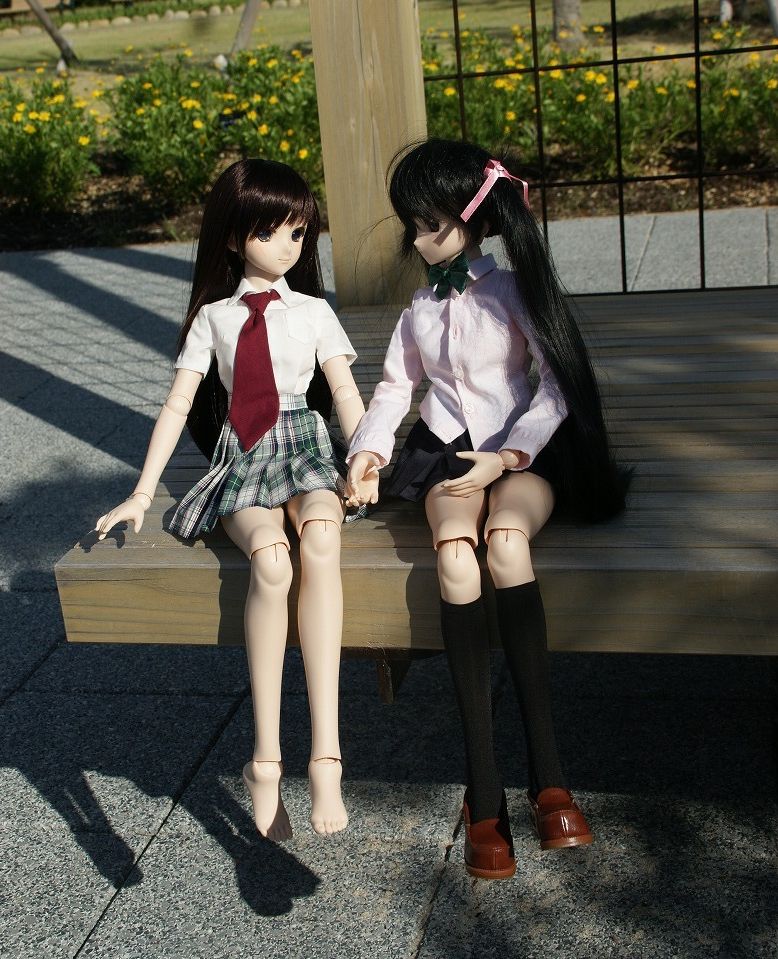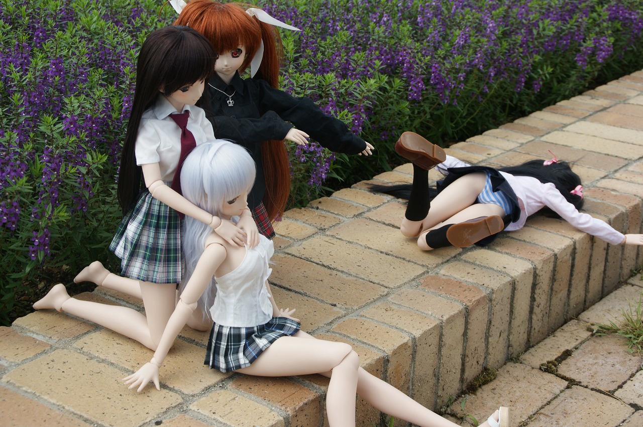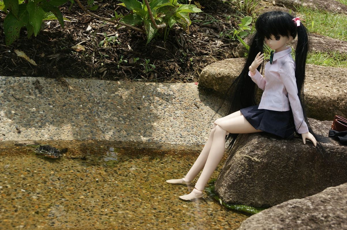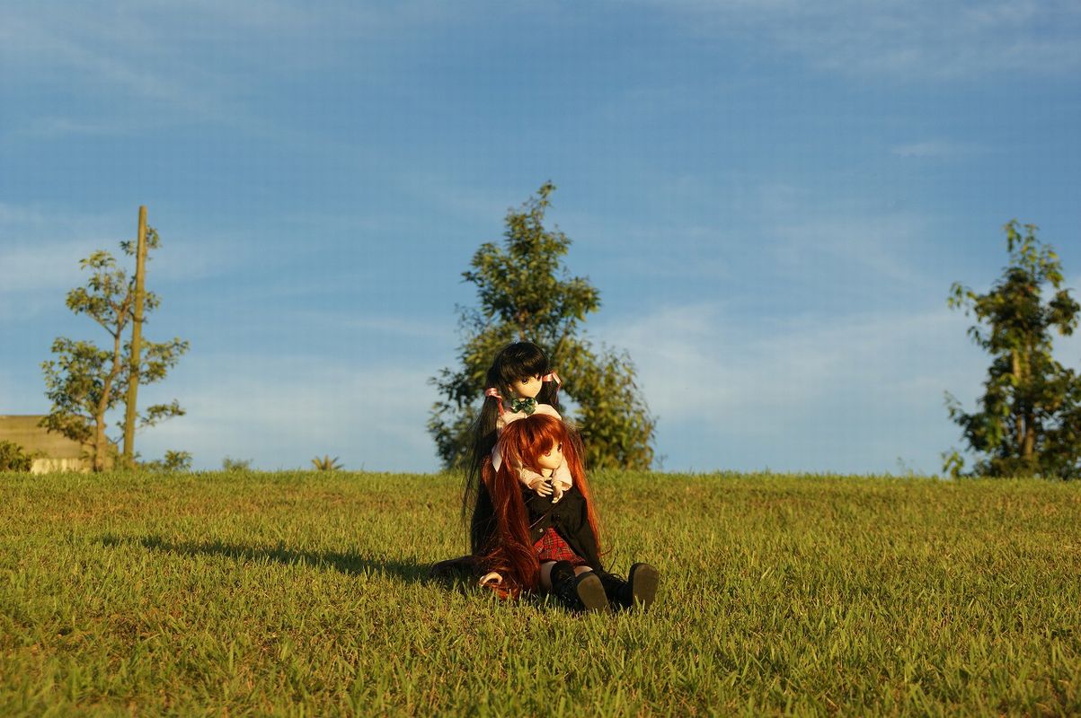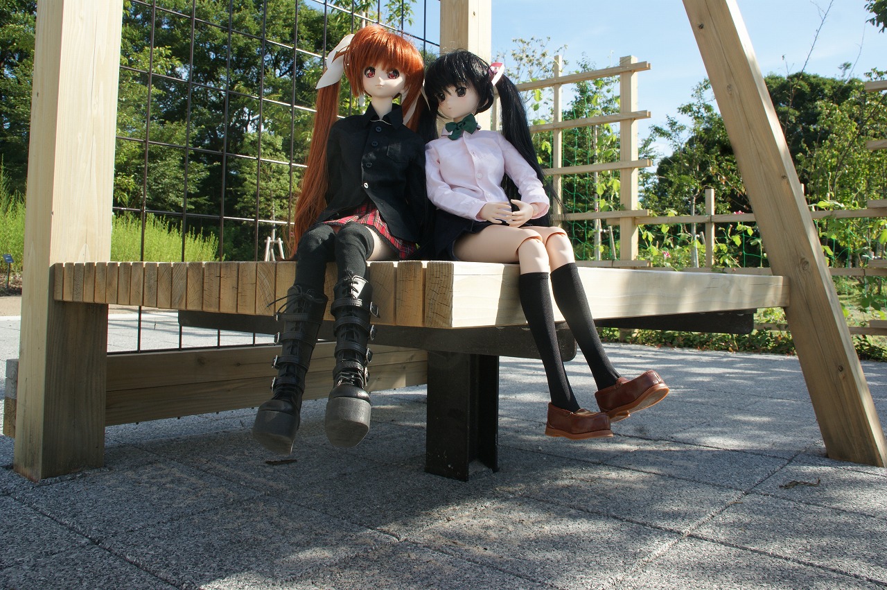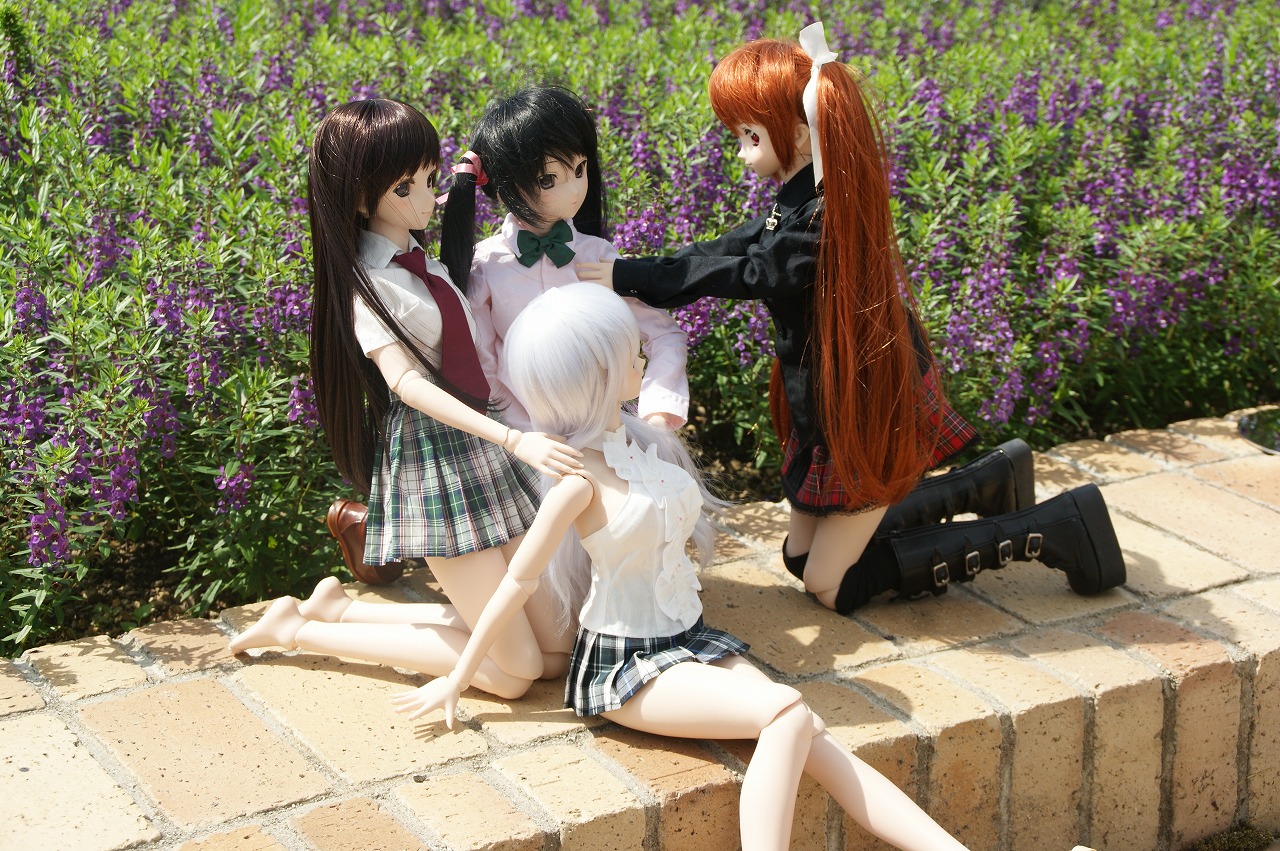 7/17、フラワーパーク江南に発起人の ledmb4daさんとえすけーしーさんとわっちで 野外撮影会をおこなってきました。 フラワーパークと言う割にはそれほど大きく花壇のスペースを確保しているわけではなく 広い芝生、噴水、散歩道など ゆっくりと過ごせるような印象の公園ですね。 よっこらせ♪ 今回の面子は左から えすけーしーさんのところの由綺嬢、 ledmb4daさんの唯姫、理奈様、 わっちの あず澪、なのはさんの五人です♪ こちらは、準備中の唯様。 座ってるだけで雰囲気が違うのですが・・・・・いったい? なのはさんで軽く撮影♪ この日はあいにくの曇り空。軽く雨が降りそうな感じですね。 こんな天気ではテンションがあがらない!と、ledmb4daさんはのたまわってましたが、 初っ端はらポ-ズ決めてパシャパシャ。 え?テンションあがらないのにこれですか? もし晴れたら、赤ザク並みに3倍の能力が発揮されるのでしょうか・・・・・ 失礼ながらもなのはさんと一緒に撮影させていただきました♪ こちらは待機中の由綺嬢。 まだまだ先は長いのだから。との余裕が感じられますね♪ 少し明るくなったところで公園内をぐるぐる。 すると・・・・・ あず澪が川のせせらぎに惹かれて言ったようです♪ あず澪 「・・・・・・・・・・・・・」 もそもそ。 ちゃぷん♪ あず澪 「冷たくて気持ちいいです」 ぱしゃぱしゃぱしゃ・・・・・・だ、大丈夫でしょうか・・・・・ そんな あず澪さんを高みの見物する由綺嬢。 ・・・・・・・・由綺嬢もいつの間にか裸足ですw さらさらさら・・・・・・・ 水の音が涼しげに聴こえてきそうですね♪ こちらは、なのはさんと由綺嬢とで記念撮影♪ ぱしゃり。 あず澪 「お花も綺麗です」 気温もこの頃から高くなってきたので、 なのはさんは日陰で休憩中。 由綺嬢は水場で。 あず澪は日陰の芝生にごろん♪ なのはさん 「なかなかすっきりしない天気ですね。」 唯姫もこてん♪ 隣のギー太もさらっといいポジション。 そんなこんなでお昼に突入。 天気悪いままなら、移動しますか~?という話をしながら休憩。 ledmb4daさんもえすけーしーさんも少食でした。 ぐぎゅるるるるるうるるるうぅ。 といった感じでいっぷくしてると、天気がだんだん良くなってきました。 昼からは入り口にある花壇にて再スタートです♪ 限られたスポットながら、美しい花々。可愛い娘たち♪ 理奈様を中心に由綺嬢、あず澪で記念撮影。 すると・・・・・ なのはさん 「私も混ぜてー!!!」 あず澪 「え?何なんですか!?」 びた~~~~んっ! あず澪 「しくしくしくしく・・・・・・」 こんな感じで、なのはさんにポジションチェンジが・・・・・・ 傍から見るとひどい惨劇です・・・・・ このあと、なのはさんはしっかり謝って仲直りをしています。 場所をかえて。 日差しがなかなか強烈です。 なのはをいつか空に飛ばしたい・・・・・・ なのはのN♪ 由綺ちゃんと一緒♪ これ、日時計なんです。 夏のお嬢さん的な雰囲気♪ 休憩も必要ですね・・・・ はしゃぎまわっているとお月様もひょっこり♪ 夕暮れ時になっていきます・・・・。 「綺麗な夕日だな・・・・・・」 「はい。とても美しゅうございます!」 日が暮れていくまでじっくり見るなんて事はここのところ無かったものだから感動でした。 とても有意義な時間を過ごさせていただいた一日でした。 普段忘れてることってこういったことなのかな~・・・・・・ PR