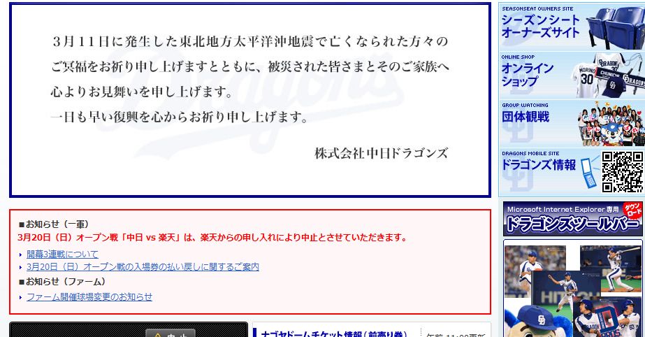 3月20日の中日vs楽天のオープン戦の招待券ですね♪