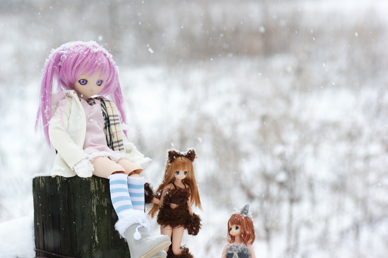 撮影会レポートお疲れ様でした!とても楽しませていただきました★ 皆様、雪の中ドールが濡れるなどの心配もなくのびのびと撮影している姿には感心いたしました。私はまだまだドールさんなどを外に連れ出すのにびびっているチキンなので…(汗) それにしても小さいころんさんとちいかさんは、自由に飛び回っていてどの写真も笑えました。特に崖っぽいところからのぞくころんさんをちいかさんが止めている写真はとてもらしくてにやにやがとまりませんでした(笑)