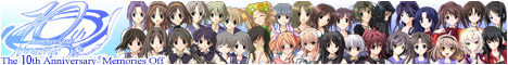 「Memories Off」シリーズが先日2009年9月30日をもって、 10周年を迎えました! オメデトー!オメデトー! もう初代のPS1で発売されてからそんなに経つのか・・・・・と感慨深いですね。 私自身では一番初めにどっぷりと浸かった恋愛ゲームだったので。 【実はこの駄Blogに一番最初にリンクしたバナーのゲームだったりします。】 特にコンサートに行ったり、みんなに広く布教したりって事は無かったのですが、 個人でできること、ビジュアルブックを買いあさったり、CDを買い集めたり、 小説を何度も何度も読み返したり・・・・・・。 今まででもこれほどはまり込んだシリーズはないですね。 この「Memories Off」シリーズは心理的な描写がとても細やかに描いてくれていて 他のゲームやアニメならサラッと流してしまうところをきっちり掘り下げてくれるような物語で 当時、なかなかそういったゲームは無かったように感じています。 (自分が出会えていなかっただけかもしれませんが・・・・。) 当時の数ある恋愛ゲームの中でも ゲームシステムも非常にできの良い作品だった記憶がありますね。 オートモードとかオートセーブ、スキップ機能なんかも、このシリーズは早々と 取り入れていましたしね。 一時は制作会社のKIDの倒産なんていう大変な山場も乗り越えてくれた愛すべきゲームです。 久々に唯笑ちゃんや詩音ちゃんの活躍が見たくなっちゃいました。懐かしいです。 学生時代の頃みたいに、久々にメモオフ漬けな生活をしたいですね。 |
