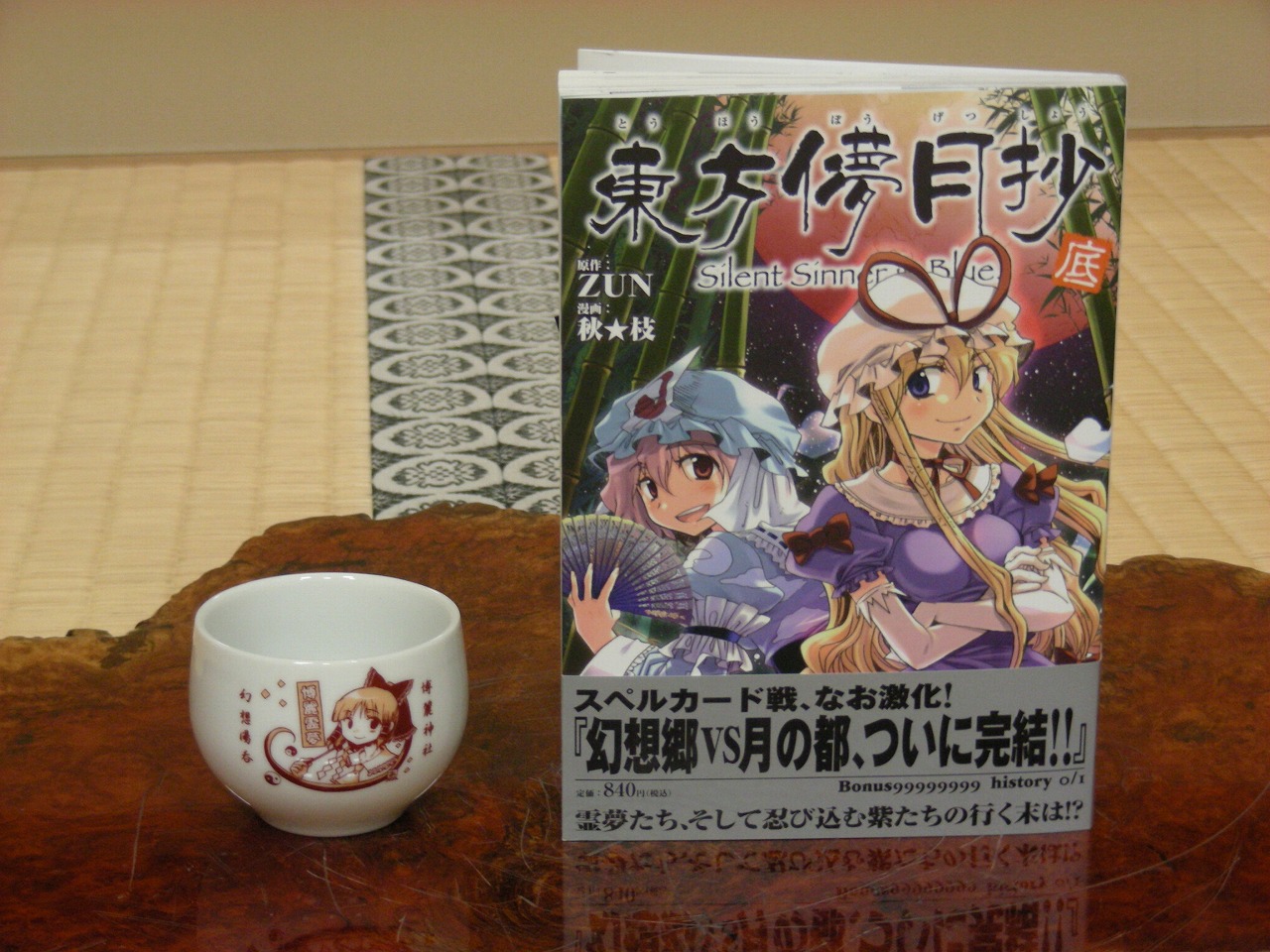 私の本の買い方は、店頭で出会って即、お持ち帰り♪な買い方がデフォなので、 本の購入特典の情報が全く疎い購入方法をしています。 だが今回はありがたいことに、あきばらいふさんの10月9日の記事に、 メロンで買うと湯飲みが付いてくる!という情報をゲットしたので、 今日も仕事場を抜け出して回収に走りました! 湯飲みまで付いて、840円(税込み)なんだゼ! グッズモノで、マグカップなんぞは800円以上が当たり前の時代に・・・・(アニメイト調べ。) これで利益が出るのかしら?と逆に心配になっちゃいますね。 白地に単色の柄ながら、かなり良い物かと。 霊夢も可愛いです! 此れは、是非皆さんのお手元にもお勧めしたい一品ですね。 私も、もう一つ欲しくなっちゃいました!