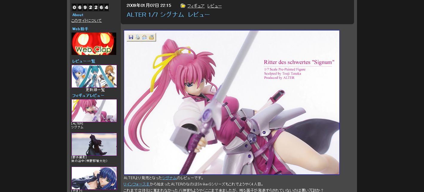 会社持込みの個人用PCで巡回してるんですが・・・ AZURE Toy-Boxさんに立ち寄ると、 シグナム姉さんキター! wktk。 しかも、かなり良い出来な上、結構な大きさだとか。 こいつは、早く手に取りたい代物ですヨ。 密林から今日届くはずなので、はよ帰りたい。 追記 AZURE Toy-Boxさんの写真は購入意欲が煽られるよなぁ。 20:00 現在 「機甲界ガリアン」のDVD見ながらふて寝します・・・・・はふぅ(涙)