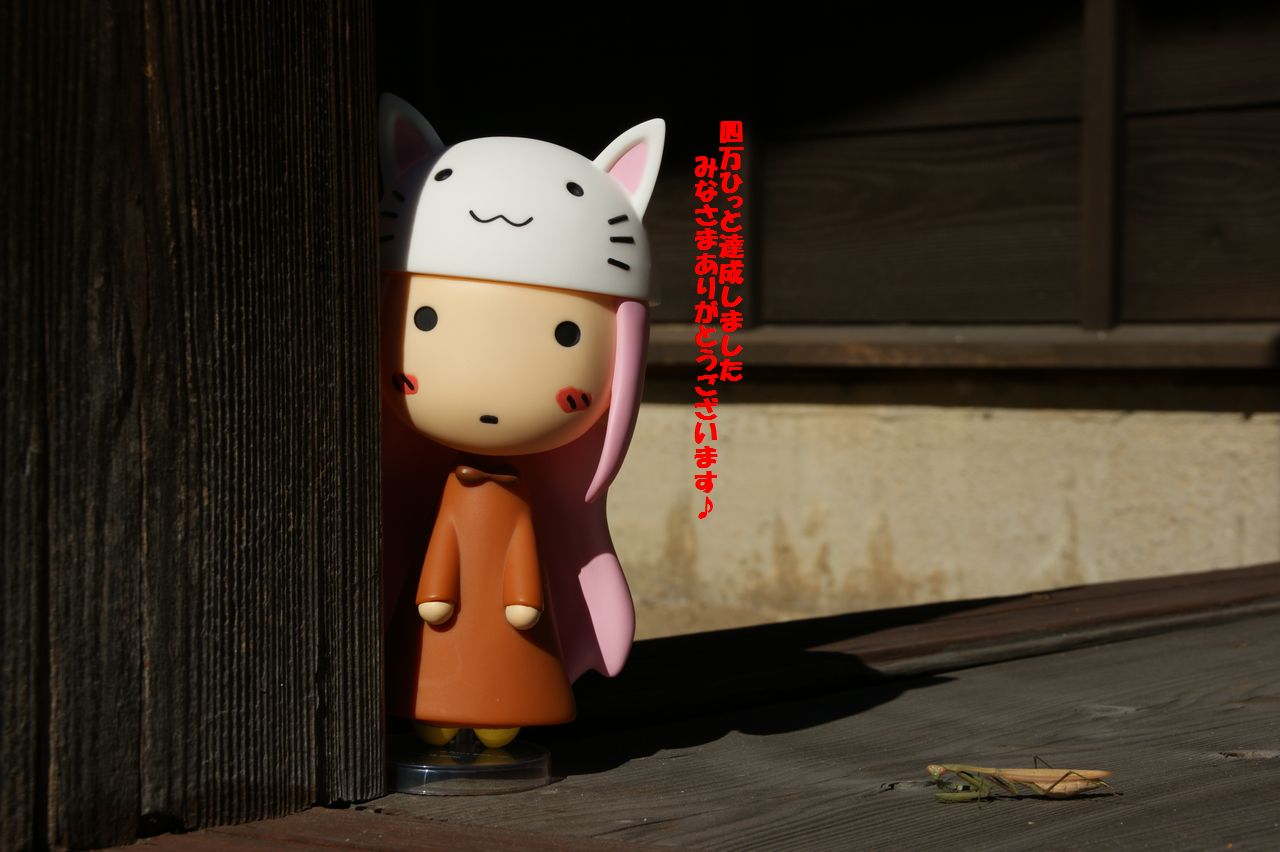 え~っと・・・・・四万ヒット達成してました。 いつも思ってますが、こんな拙いBlogにきてくれてありがとうございます♪ 最高のおもてなしは出来ませんが、精一杯頑張ってます。 始めた頃は、ただの日記ですが 今ではおもちゃやお人形の写真を撮ってちまちましてます。 心が弱い私が、こんなに長く続けられたのは、みんなのおかげ♪ 私を外の世界に連れ出してくれたのもみんなのおかげ♪ 自分ひとりじゃ何も出来なかったとよくよく感じています。 今日のトエトちゃんのように、 自分じゃ一歩をまだ踏み出せないけれど。 これからもほっこりと見守ってくれるとうれしいです。 今まで見守ってくれた人たち。 気軽く通り過ぎてくれた人たち。 みんな、みんなに、ありがとう。 そして・・・・・ これからもよろしくお願いします。 |