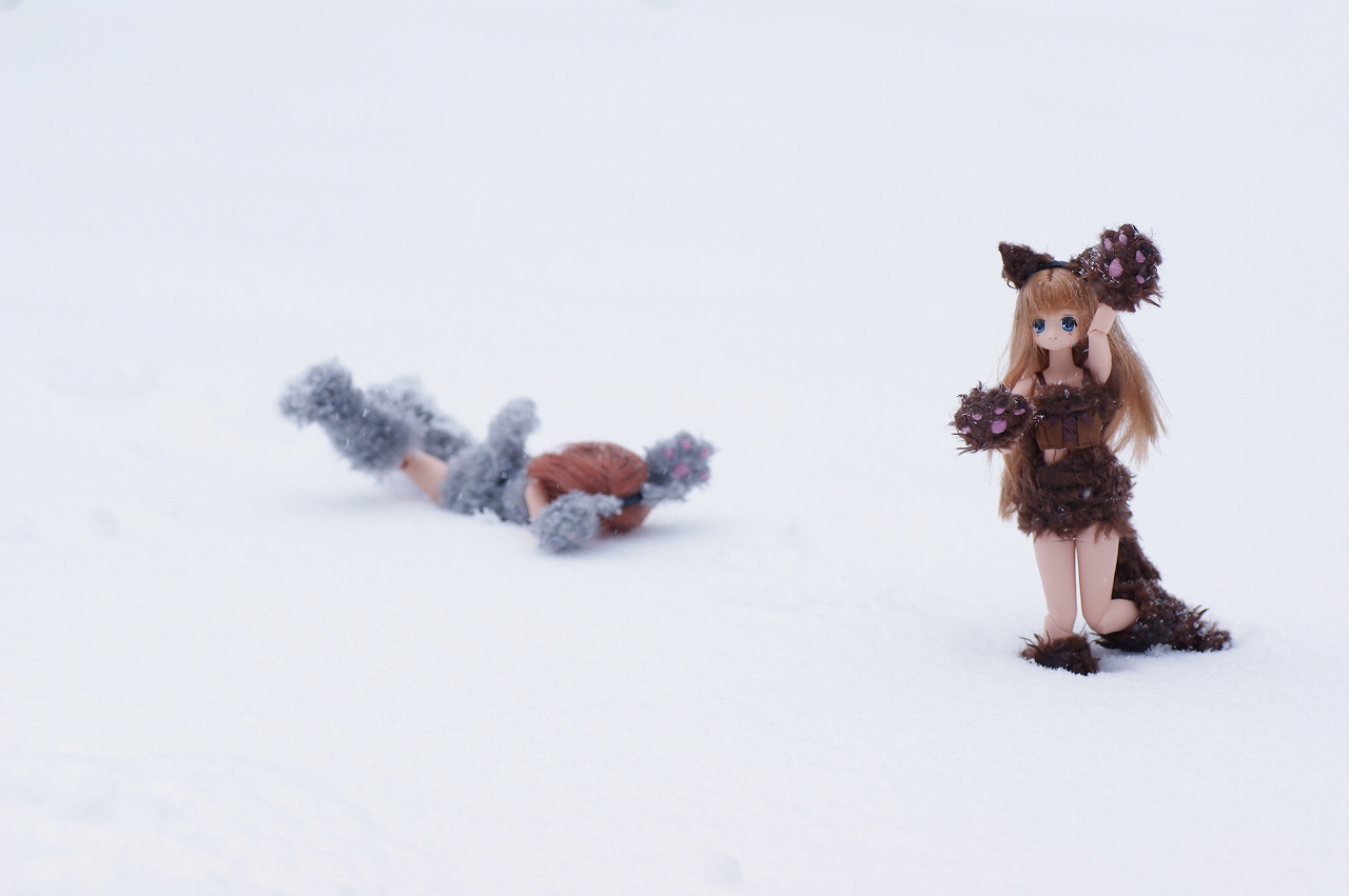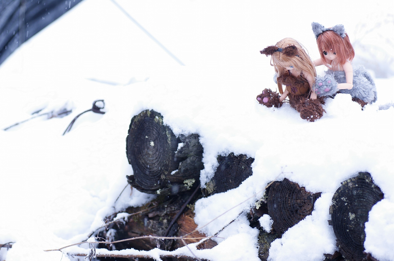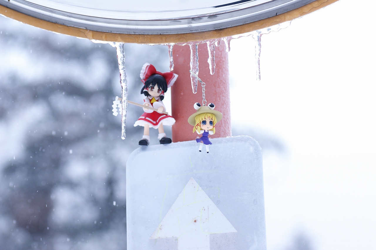 前日の早めに爆睡てしまった私ですが・・・・・・何も悪戯されていませんでした。(たぶん。) よかったよかった♪ 早く寝てしまうと何かしらありそうだったので気になってましたが、 気分爽快、体調回復でとても気持ちよかったです♪ 他の皆さんはお疲れだったようなので・・・・ みずなさんを連れてホテル内の廊下を歩いてみます。 やけに寒いな~・・・・・ と窓の外を見てみると、 待望の雪が降り始めていました。 前日には欠片も見られなかった雪です♪ みずな 「雪がちらちら舞っていて綺麗だね!」 一応、名義上「雪山オフ」だったので、 雪さえ舞っていればそれっぽい雰囲気が出るかな~♪ なんて、わくわくしてきました! さて、ホテルの廊下を散策してみると・・・・、 花瓶や・・・・ お花が綺麗にライトアップして飾りつけられていました♪ こちらは廊下の飾りですが・・・・撮影しがいのある広さですね♪ なかなかホテルでの撮影ってのはないからなぁ~♪ 軽~くみずなさんとの散歩を終えて帰ってみると・・・・ ledmb4daさんの娘が一人増えていました・・・・(マテ ここ・・・・長野だよ? 活動範囲の関東圏じゃないんだよ? なんか、夜中にマクロスF一番くじを求めて夜中に徘徊していたらしいです・・・・ ledmb4daさん・・・あなたって人は! ある程度時間が経ったようで外も明るくなり、 食事を済ませて準備万端! 美ヶ原高原に向かいます! ・ ・ ・ ・ あれ? ・ ・ ・ ・ 雪がすっごく積もっているんですが・・・・・ 大人数浄乗車の重い車ということもあるということもあり・・・・ 道半ばで立ち往生・・・・・え~っ・・・・。 みんなでいろいろ頑張ったのですが、雪も降り積もり危険と判断。 お手上げ状態でした! ころん 「山だっ!雪だ~っ♪」 ちいか 「綺麗・・・・。」 雪山初体験の狼さんたちは途中下車でも大変嬉しそうでした。 ころん 「つららっ♪」 なかなか見ることが出来ないです♪ 後に東方チームが綺麗に飾られていました♪ そしてその頃・・・ ころん 「うにゃぁぁぁ♪ 雪凄いぞ~!!!」 ころんさんははしゃぎ回っておりました。 ちいか 「ころんちゃん、待って・・・わぷっ!」 ちいかさんは、なれない雪に足をとられて転んでしまいました・・・大丈夫? ころん 「ゆきゆきゆきゆきゆき~~~♪」 ころんさんは、ちいかさんが転んだのをぜんぜん気付く気配がありません・・・・。 「ころんちゃ~ん!ちいかさんを助けてあげて~!」 ・ ・ ・ ころん 「ちいかちゃん、大丈夫?」 ちいか 「大丈夫・・・痛くなかった。」 この娘達は可愛らしいな。 そんなこんなで遊んでいる中、 他の皆さんは車を復旧中・・・凄く頑張っています。 さらに人数も増えてます。頑張ってますね! すると・・・・ ころん 「大変そうだよね~、ちいかちゃん♪」 ちいか 「ちゃんと帰れるかな?」 と、狼さんたちは見学中です♪ ふぅ・・・仕方ないので、ここで休憩しましょう・・・・。 という感じでここで本格的に撮影を皆さん開始です♪ 跳ねるみずなさん♪ 白きナツキ。 寒そうでかわいそう・・・ってみんなに叱られました・・・orz 雪山にはこの娘でしょ!と、あさりんさん推薦のイリヤ・スフィール。 連れて来てよかった♪ 途中下車でも時間がたつのが早かったですね♪ その後、山を下っていき また、途中下車して撮影。 みずな 「改めて撮影開始です♪」 ころん 「うわぁ♪」 ちいか 「ころんちゃん、危ないよ~っ!」 雪の中でも綺麗な水の流れがそこにありました。 そんなこんなで時間も過ぎて・・・・タイムリミット。 楽しい野外撮影および「長野雪山オフ」は終了となりました。 初の本格的野外撮影でしたが、とても楽しい旅でした! 色々失敗も多かったですがそれもいい思い出、 また機会があったら参加したいものですね♪ |