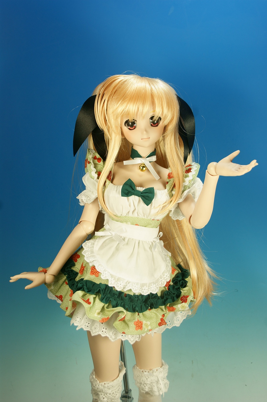 可愛い笑顔♪ エプロンドレスを着けてくれました♪ このドレスは、京都ドルパでお会いした、 sweet chin music のカワさんから譲っていただいたものです♪ 思っていたよりも明るい色調で予想外に金髪なフェイトさんに似合って驚き♪ 誰?エロゲヒロインみたいなんていったのは!? PR