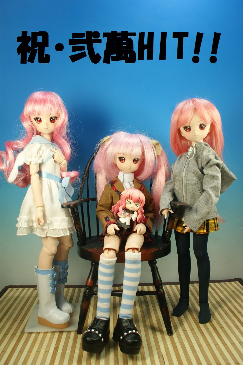 ココのところ、なかなか時間が無かったり風邪ひいたり、鬱にはいったりと、 集中してまとまった時間が取れない状況でございます。(全部まともな理由じゃないですね。) ほんと~に、ごめんなさいっ!!! 現在もちょっと頭ぼんやりでフワフワしてますが、一山越えたようで、 久しぶりにPC前でいそいそとキーボード叩いています♪ そんなヘタレた中の人の状況にもかかわらず、 カウンターが・・・・ 弐萬HIT達成いたしました~!!! ばんざ~い!!! ばんざ~い!!! ばんざ~い!!! この辺鄙な駄Blogが二万ですよ二万!考えられません!!! 皆様、本当に、本当にありがとうございます! この、何の統一性も見当たらない雑記Blogですが 皆様にお付き合いいただけているという事に感謝感激しております! 嬉しくて嬉しくて、中の人は舞い上がっております!!! わは~っ! このまま、何事も無く、3万HITいけたら良いなぁ~♪ 何はともあれ、 皆様、ご愛顧ありがとうございます! これからも、ぼんやりのんびり頑張りますので よろしくお願いいたします!!! ということで新しく増えたルイズさんでお祝い写真です!ルイズ三連星です! 皆様ありがと~っ!!! (>▽<)ノシ |