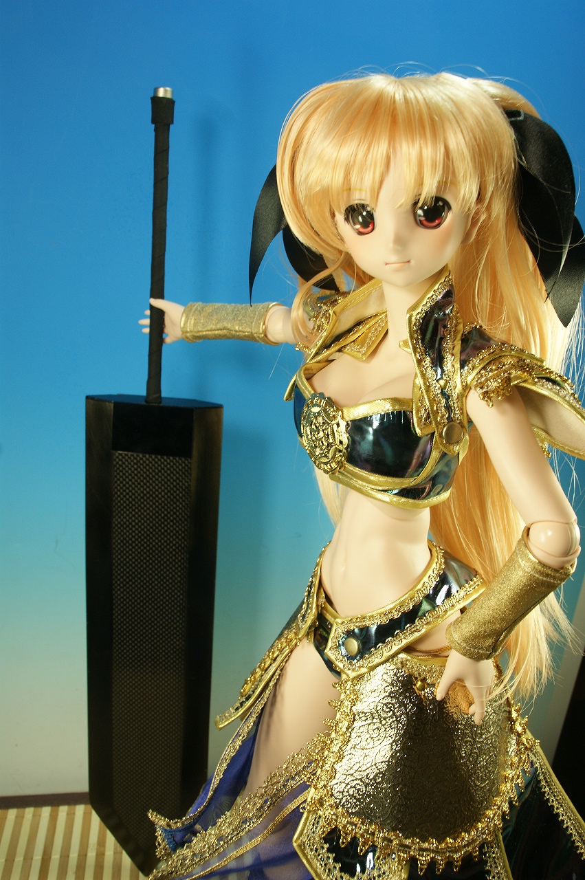 今日はフェイトさんにご登場願いました! 以前 Pure Drop さんのところで購入させていただいた 中国風甲冑をつけて登場させていただきました。 今までお蔵入りになっていたのは、この甲冑がDDdy用なので 若干サイズが合わないということで外してたんです。 ですが、今回もまたK's D・Dream Studio さんのところの記事に 触発されて着せてみましたw ふむ、結構可愛いなぁ! オマケに。 カーボン製の大剣もフェイトさんにプレゼント。 似合うなぁ! さて今回の撮影で改めて思ったのは・・・・撮影ブースが狭いこと。 DD撮るには、もっと広い場所が欲しいなぁとつくづく思いますね~。