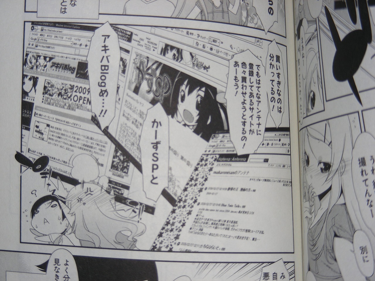 購入してきました。著者はいけださくら さん。 一応これが限定版の表紙だが・・・・元ネタあるのかな? この漫画の内容で限定表紙ってことは何か意味があるはずなのだろうけれど・・・・・わからないっす。 原作の挿絵のイメージも壊さない感じでなかなか良いですね。 ちなみに裏は、 作品内アニメ 「星くずウィッチーズ メルル」のDVDパッケージのイラストでした。 漫画内では、きりりん が、このアニメDVDのパッケージの中に「妹と恋しよっ♪」というタイトルの エロゲを隠しているわけですが・・・・・意味無いような気がしますね。 正直、厳格なきりりん の家では、どちらもアウト!というか エロゲと少女アニメの区別なんぞ、全くつけてくれないようにも思えますね。 モノを知ろうとしない人ってそんなもんです。 ε-(;-ω-`A) フゥ さて「俺の妹がこんなに可愛いわけがない」といえば、 現実にあるサイトや事象をそのまま内容に組み込んでくることが知られていますが、 私の個人的な見所は、 こういった、普段のきりりん の表情が、 大好きな趣味のことを語るときには、無意識に緩む表情。これがイイデスネ! こういった、ラノベでは表現しきれない仕草や描写を視覚的に一発で見せてくれるっていうのは 漫画版ならではの表現ですし、なにより身に覚えがありすぎて・・・・・・。 なんにせよ、漫画版「俺の妹がこんなに可愛いわけがない」は期待を裏切らない いや、それ以上の出来でした。 原作読んでても違和感なく楽しめる。よいコミカライズですね。 明日は通常版を買って帰ろう。 うん、そうしよう。 |