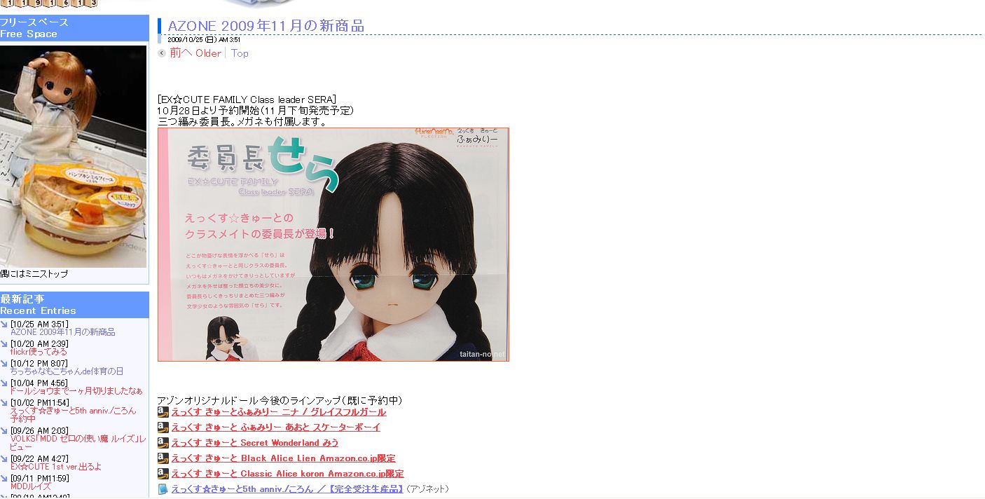 patuvol Blog あいざわゆうのぷらいべーと・ぶろぐ 2ndえでぃっしょん すのこ Go My Way Dokupedia オレはオレを越えてくぜ! ふぃぎゅのーつ ~蒼月彩記・特装版~ まにあっくすじんぶろぐΣ(゚Д゚; 間違いが本質 CAF-aholic DollsSide ネコとクルマと・・・ Atelier CoCoo* 隠れオタクの秘密基地 まいたの世界 まりねころぐ Ver.3.0 take-yのドール日記 n°F カスタムドールLife ★☆ 1P's Land ☆★ holoと道づれ(;´Д`) 迷い猫の迷走日記 ドール初心者 るいせの日々。 Y-system Air K&B ToyBox かみのブログ 涼宮ハルヒの写真集Blog じゃこのドールブログ UNION CLOTH NekoLog 魔王のお城