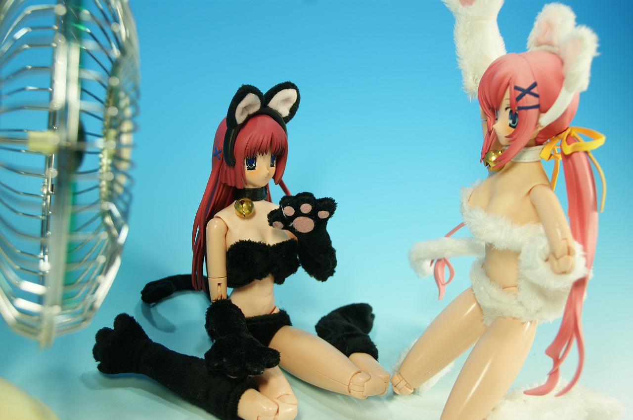 ななか 「ううぅぅぅぅぅ~っ。暑い~っ!蒸し暑いよ~っ! この衣装じゃ毛皮も生え変わらないし、 KOUOHくんはプールに連れてってくれないし、 もう耐えられないよ~っ!」 ななか 「あああぁぁぁっ!もう駄目~っ!KOUOHのばか~っ!」 ことり 「・・・・・・・・・・。(とことことこ)」 ゴソゴソゴソ・・・・(カチッ!) ぶぅぅぅぅん・・・・・・・ ぶぅぅぅぅん・・・・・・・ ななか 「うぁ?何の音・・・・?」 ぶぅぅぅぅん・・・・・・・ ぶぅぅぅぅん・・・・・・・ ぶぅぅぅぅん・・・・・・・ ななか 「・・・・・・・・・・・・・。」 ことり 「・・・・・・・・・・・・・。」 ななか 「・・・・・・・・・・・・・・・・・・・・。」 ことり 「・・・・・・・・・・・・・・・・・・・・。」 ななか 「あの~・・・・・ことりさん?」 ことり 「ん?どうしたの?ななかちゃん?」 ななか 「・・・・この扇風機は?」 ことり 「えっとね~、KOUOHくんが暑い日が続いて大変だろうからって 買ってくれたんだよ~♪KOUOHくんはやさしいねっ!」 ななか 「・・・・・・・・・・・・・。」 ことり 「・・・・・・・・・・・・・。」 ななか 「・・・・・・・・・・・・・。」 ことり 「・・・・・・どうしたの?」 ななか 「なんでKOUOHはそういったことを、 ことりさんには伝えて私には言わないかなぁ!!!」 ことり 「え?え?何?何?」 ななか 「こうなったら、バッチリ使いたおしてやるんだからぁぁぁぁぁっ!」 ことり 「ななかちゃんっ!ななかちゃんっ!私に風が当たらないよぉぅっ!」 今日は・・・・・USB扇風機を買ってきてあげました。 ゴメンネ。まだ水着が買えていないの。 二人で仲良く涼んでいてね。