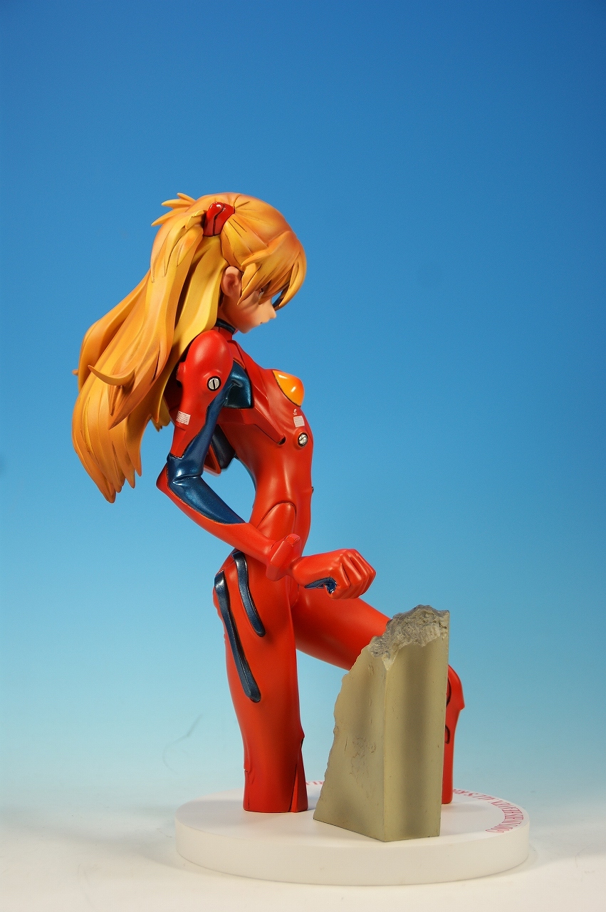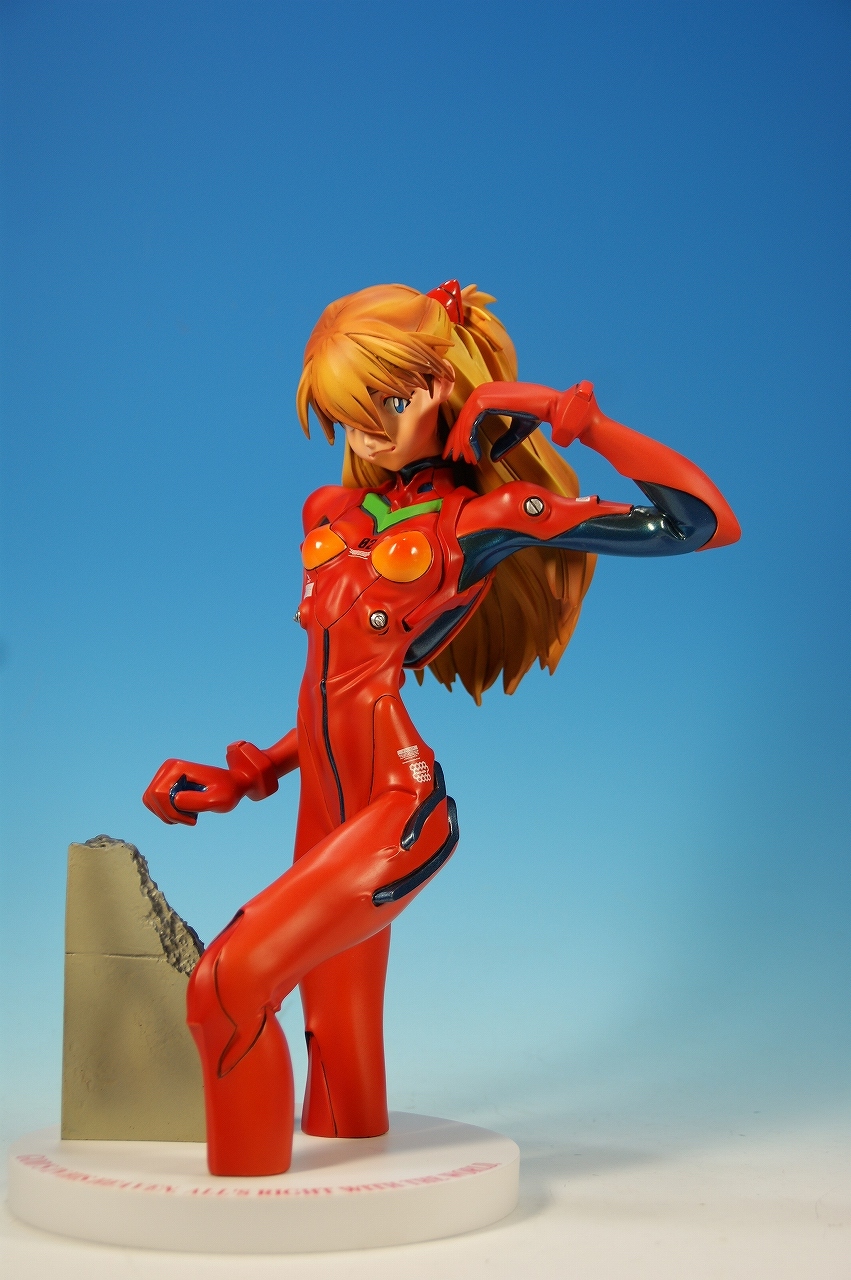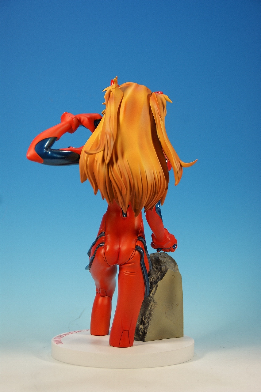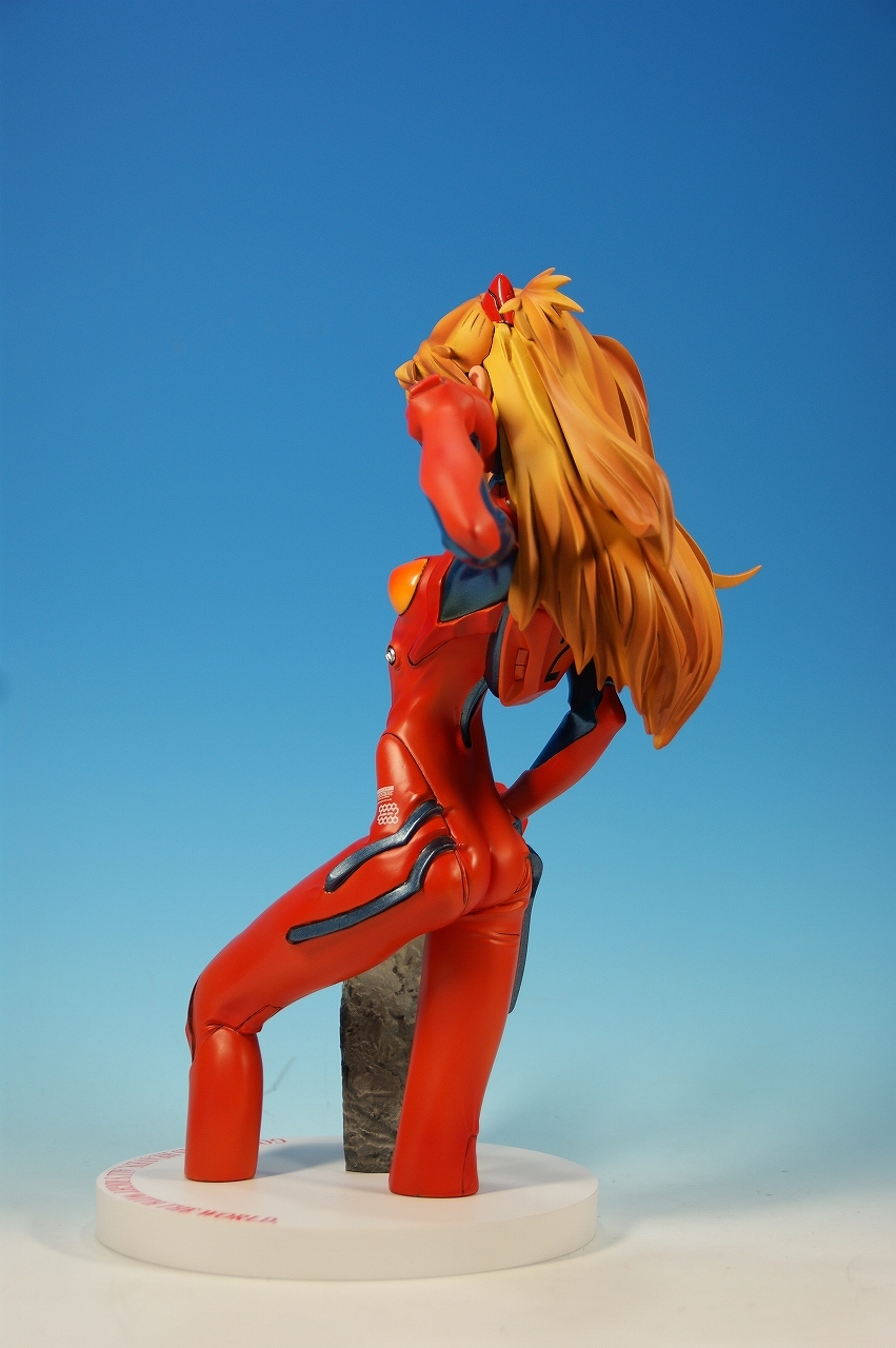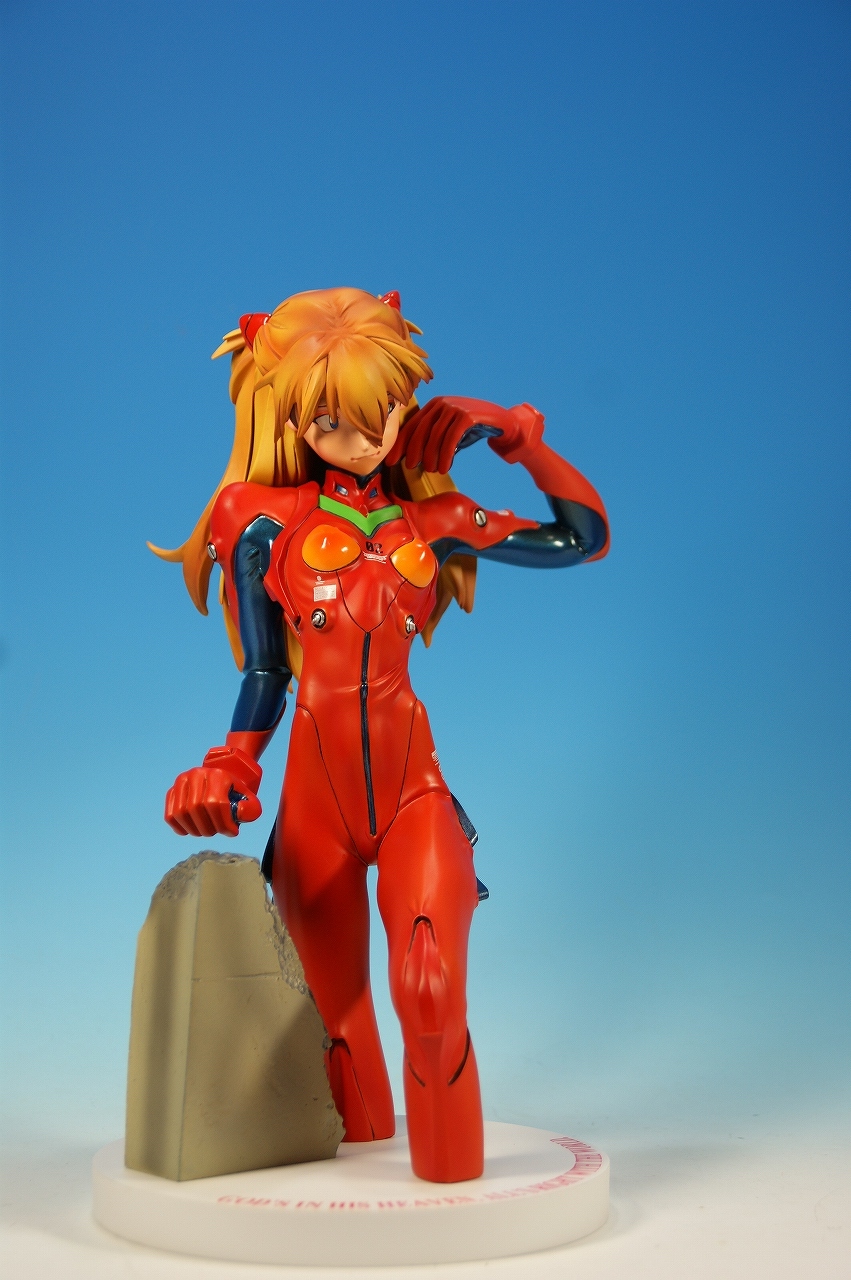 「惣流・アスカ・ラングレー」を開封! 原型は軽音堂の臼井政一郎 氏。 ここのところエヴァ熱が発動気味な上、ちょっと変わった物がいいなぁなんて気持ちがあった折に、 ほんの少々お買い得チックな物品があったので、サクッと収集しちゃいました。 勢いだけで購入したことについては反省しているけれど後悔はしてない。 うん、後悔していない! 海洋堂っていうと、ガレージキット全盛時代には、キャラ物を沢山販売していたけれど、 PVC完成品全盛になるころからキャラ物なんて、 まともにお目にかかっていないイメージがありますね。 いまでは「リボルテック」ぐらい?これだってロボメインのイメージがあるもんなぁ・・・と。 では、外箱は、こんな感じ~♪ 白い箱にシールのみです。 当時の立体物の箱って、こんなものだったよね。普通の玩具屋には、まずありませんっていう感じ。 こういった無味無臭な梱包のものは一部のコアな人向けって印象になっちゃいますね。 では、グルリと一周! サイズは1/4。脹脛より上の半身像ですね。 プラグスーツの特性上、体のラインがキッチリ出ます。 腰やお尻のライン、二の腕などの曲線がとても美しい出来ですね。 表情はアスカの原型を残しつつも、かなりのアレンジが加えられているように感じます。 全体的に日本人らしくない不遜ともとれるような表情でアニメ、漫画版にはまず無い表情です。 が!アスカならこの表情のありかな?と思えてしまう。ちょっと不思議。 ホント、どの角度から見ても見応えありますね! プラグスーツの細かい部分もシッカリした仕上げがされているし、 大きい物特有の単調さも特に見当たりませんね。 以上、海洋堂の新世紀エヴァンゲリオンの「惣流・アスカ・ラングレー」でした♪ これは結構前の商品だと思うのですが、今見ても全く見劣りしませんね。素晴らしい! 勢いだけで購入しても、この出来なら後悔は出来ないです。
