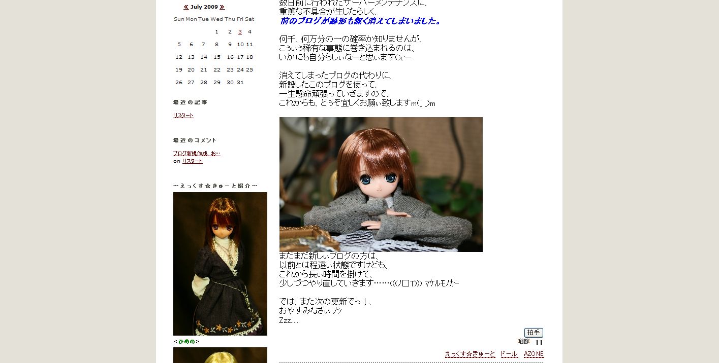 patuvol Blog あいざわゆうのぷらいべーと・ぶろぐ 2ndえでぃっしょん すのこ Go My Way Dokupedia オレはオレを越えてくぜ! ふぃぎゅのーつ ~蒼月彩記・特装版~ まにあっくすじんぶろぐΣ(゚Д゚; 間違いが本質 CAF-aholic DollsSide ネコとクルマと・・・ Atelier CoCoo* 隠れオタクの秘密基地 まいたの世界 まりねころぐ Ver.3.0 take-yのドール日記 n°F カスタムドールLife ★☆ 1P's Land ☆★ holoと道づれ(;´Д`) 迷い猫の迷走日記 ドール初心者 るいせの日々。 Y-system Air K&B ToyBox かみのブログ 涼宮ハルヒの写真集Blog じゃこのドールブログ UNION CLOTH NekoLog 魔王のお城