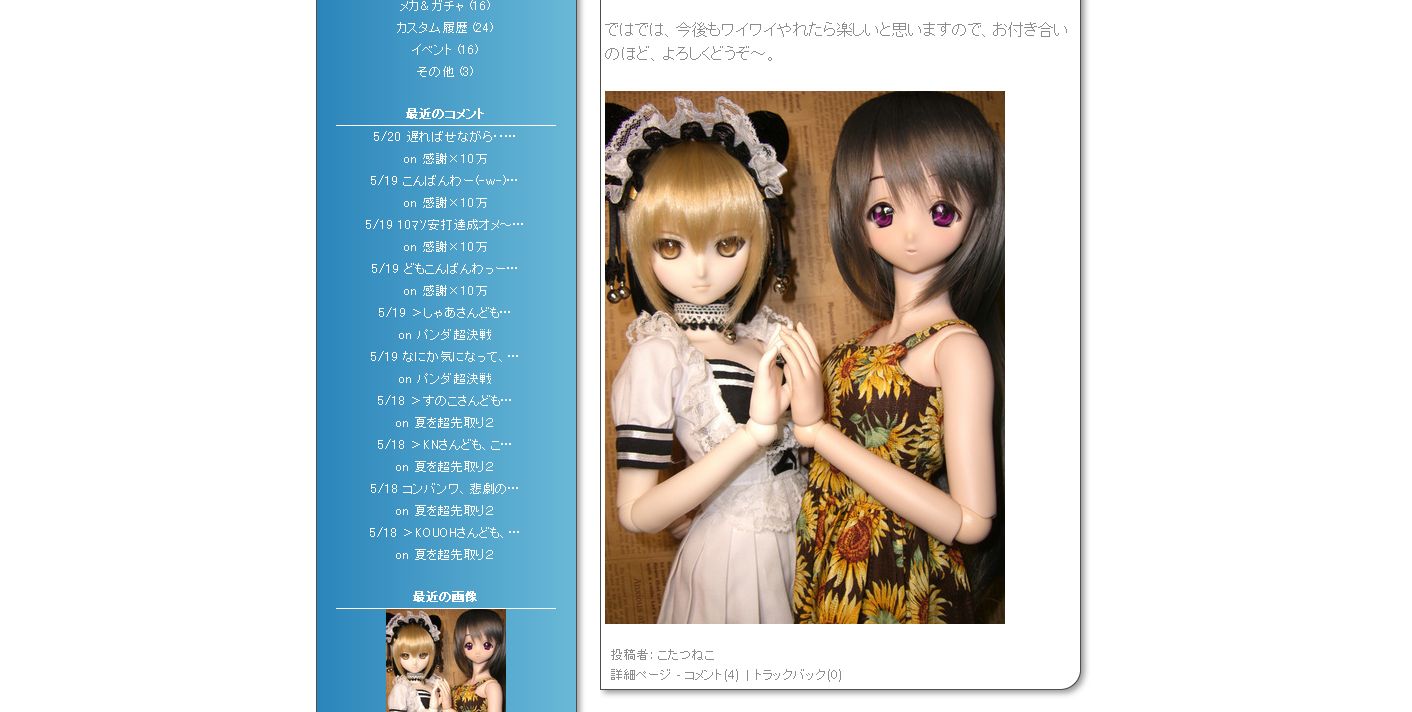 patuvol Blog あいざわゆうのぷらいべーと・ぶろぐ 2ndえでぃっしょん すのこ Go My Way Dokupedia オレはオレを越えてくぜ! ふぃぎゅのーつ ~蒼月彩記・特装版~ まにあっくすじんぶろぐΣ(゚Д゚; 間違いが本質 CAF-aholic DollsSide ネコとクルマと・・・ Atelier CoCoo* 隠れオタクの秘密基地 まいたの世界 まりねころぐ Ver.3.0 take-yのドール日記 n°F カスタムドールLife ★☆ 1P's Land ☆★ holoと道づれ(;´Д`) 迷い猫の迷走日記 ドール初心者 るいせの日々。 Y-system Air K&B ToyBox かみのブログ 涼宮ハルヒの写真集Blog じゃこのドールブログ UNION CLOTH NekoLog 魔王のお城