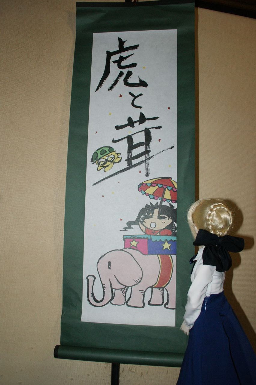 おるたさん 「・・・・・・・・・・・」(ムスッ!) KOUOH 「ど、どうしちゃったのかな~?おるたさ~ん。」 おるたさん 「・・・・・・・・・・・マスター、自分の胸に聞くのです。」 KOUOH 「自分の胸にって・・・・・・あ!」 おるたさん 「・・・・・・・・・・・。ぷいっ!」 KOUOH 「ごめんなさい~。最近かまってあげれませんでした~。」 おるたさん 「だいたい、マスターは八方美人過ぎるのです! 外を出歩いて保護者のいない娘達を見るとすぐ引き取ってしまうんですから! 今回は許してあげますが、ちゃんと今いる娘たちも可愛がってくださいね!」 KOUOH 「本当に・・・・・、ごめんなさい・・・・。」 おるたさん 「で?私を呼んでいたようですが、なんですか?」 KOUOH 「そうそう。おるたさんにプレゼントを買ってきたんですよ。」 おるたさん 「・・・・・これ・・・ですか?お洋服ではないようですね。 まぁ、お洋服でも問題ですが。マスターはセンスが無いですからね。 ボーダーラインさんやこたつねこさんのように、 もっとセンスをみがいて欲しいものです。」 KOUOH 「ひどっ!!」Σ(゚Д゚|||) KOUOH 「おるたさん。さっきのこと、まだ根に持ってません?」 おるたさん 「気のせいですよ?」 KOUOH 「・・・・まぁ、いいか。でコレなんだけれどね・・・・・。」 おるたさん 「こっ!コレはっ!!」 おるたさん 「タイガー道場掛け軸 赤の書じゃないですかっ!」 KOUOH 「町の 状態がちょっと悪かったんで良い価格で展示してあったんだよ。 おるたさんが喜んでくれるかなぁ~と思って買ってきちゃった。」 おるたさん 「ま、ま、まママ、マスターッ! コレを本当にいただいてよろしいのでしょうかっ!」 KOUOH 「もちろん。おるたさんに喜んでもらうために買ってきたんだから。 じゃあ、早速広げてみようか。」 おるたさん 「はいっ、マスターッ!」 ちょっと間を置いて・・・・・ おるたさん 「・・・・・」 KOUOH 「・・・・・」 おるたさん 「・・・・・ほわゎゎゎん」 KOUOH 「・・・・・はふうぅぅぅぅ」 おるたさん 「・・・・・いいですねぇ・・・・。」 KOUOH 「・・・・・いいもんだねぇ・・・・・。」 おるたさん 「・・・・・でも、マスターには分不相応かもしれませんねぇ。」 KOUOH 「・・・・・そうかもしれないねぇ・・・・。」 おるたさん 「・・・・・ほわゎゎゎん」 KOUOH 「・・・・・はふうぅぅぅぅ」 KOUOH 「まぁとにかく、おるたさんが喜んでくれてよかったよ~。」 おるたさん 「なかなかの目の保養になりました。 マスターもあの掛け軸を持つにふさわしい人物にならないといけませんね。」 KOUOH 「大変そうだなぁ・・・・。」 という訳でタイガー道場掛け軸 赤の書を何故か手に入れました。 何で手に入れる気になったんだろう??? まだまだ私には手に余る品かも。おるたさん、大事に保管しててくださいね。 巡回~♪ 今日はホビージャパン誌上限定で発売された、 |