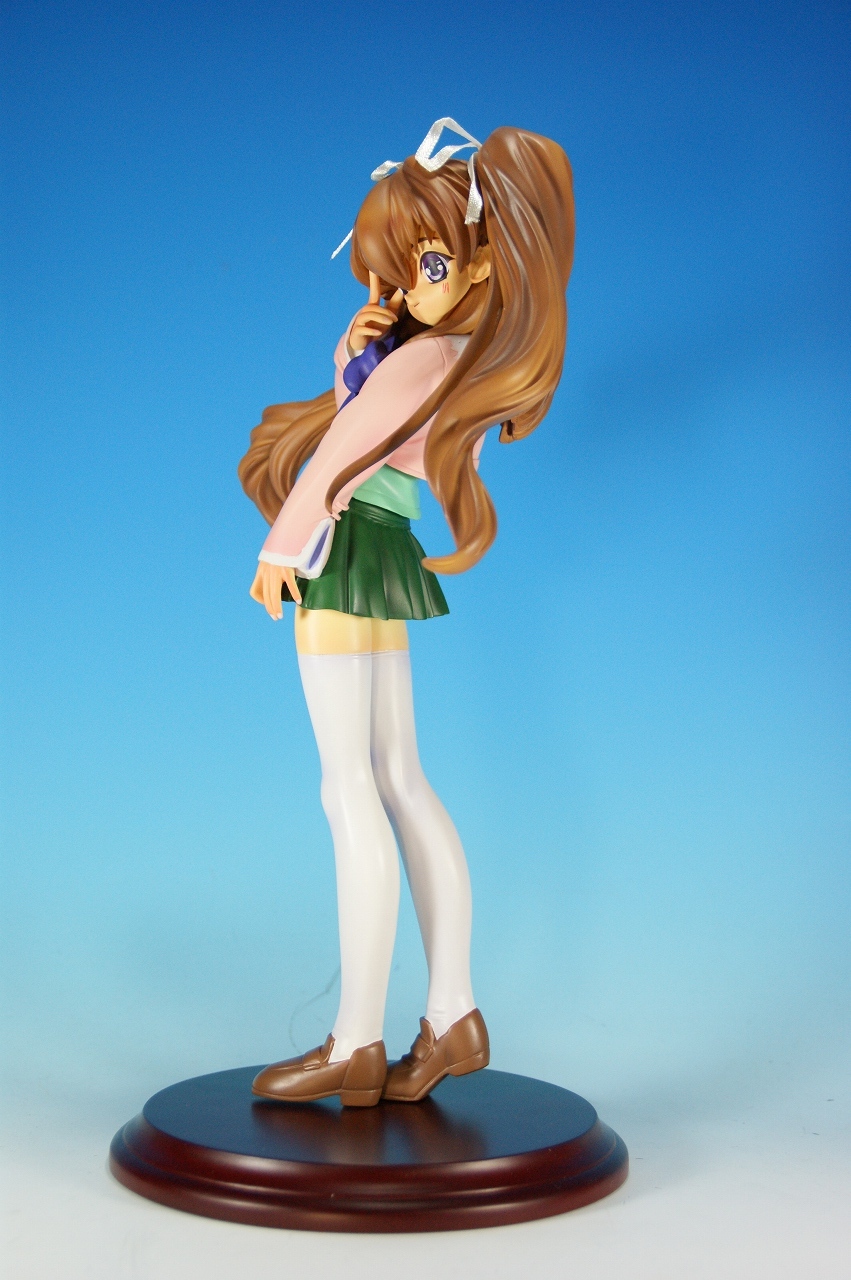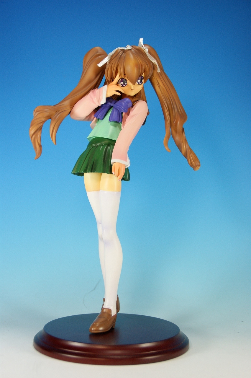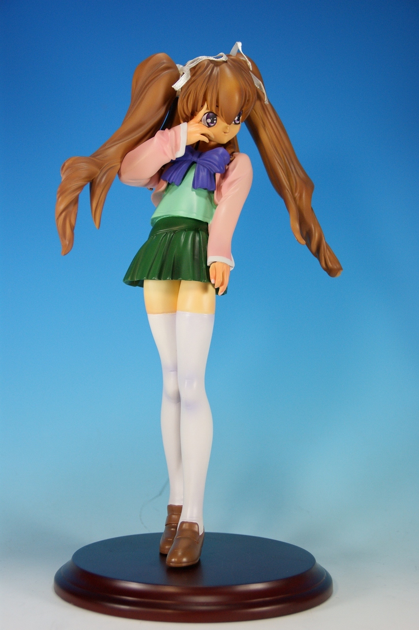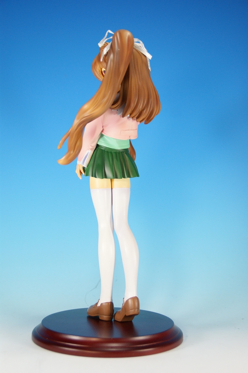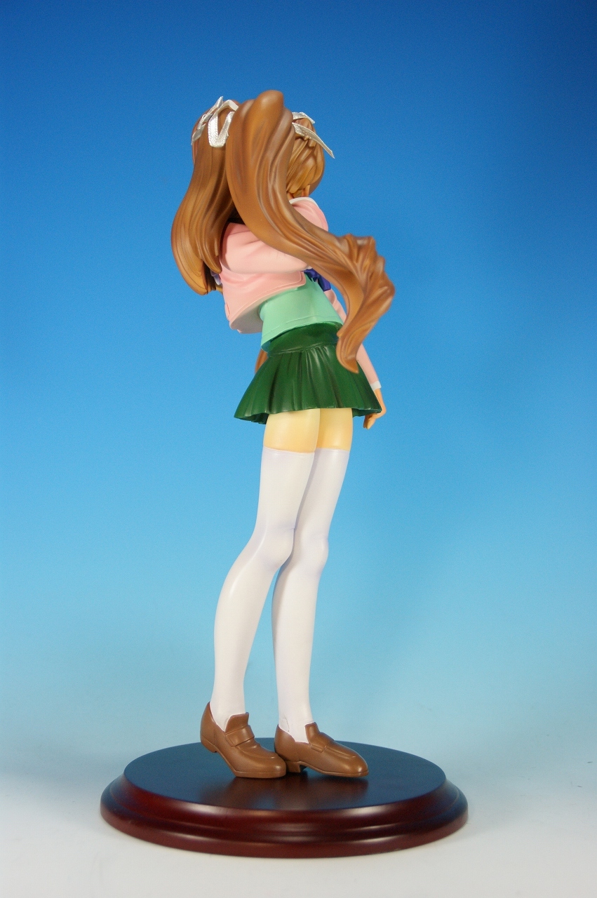 この娘は2008年に開催された「クレイズ萌え~ろ祭」で発売されたようです。 原型師は「みすまる☆ましい」氏ということで、前回の好イメージのため 大須の中古屋に鎮座されていたところを即査収。 外箱は、 白い木箱です。ゲームタイトルが金色で箔押ししているようです。 この箱自体も紙の箱に入っていたのですが、保存状態が悪いため (中古のため)割愛。 開けてみると、 こんな感じ~。新品じゃないので雰囲気だけでも。豪華に感じます。 では、ぐるりと一周。 愛沢ともみと言えばツインテール。このボリューム感がとても目を引きます。 また、動きが少ないポーズの中で、あどけない愛らしさがにじみ出ています。 ちょっとアップで。 手の甲が半分隠れる袖が、とても良い感じ。 リボンが布製なので、個人個人で調整が必要かも。 指や手が、 造型が甘い上、妙に赤味かかっていて大変残念。 造型はまだしも色味がコレだけ違うのは・・・。 足元は結構よい造り。 ウェーブ版と並べてみると、 同じ人の作品で、同じモチーフでも違いが出るので面白いです。 以上、 「クレイズ 愛沢ともみ 私服版」でした~。 細かいところに粗はありますが、「みすまる☆ましい」氏のともみ嬢はとても愛らしいですね。 今回、中身未確認で、原型師名義のみ、知識なしの購入に踏み込みましたが、結構満足。 今までは店頭パッケージやHPの写真なんかで見ながら感性で購入してましたが、 これからは、原型師さんをもっと注目してみようかな。同じ結果かもしれないけどね。