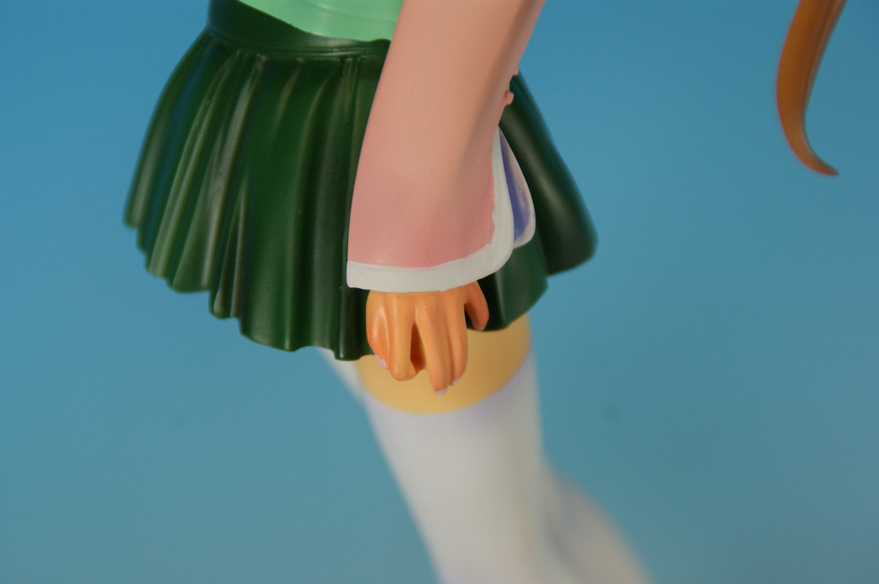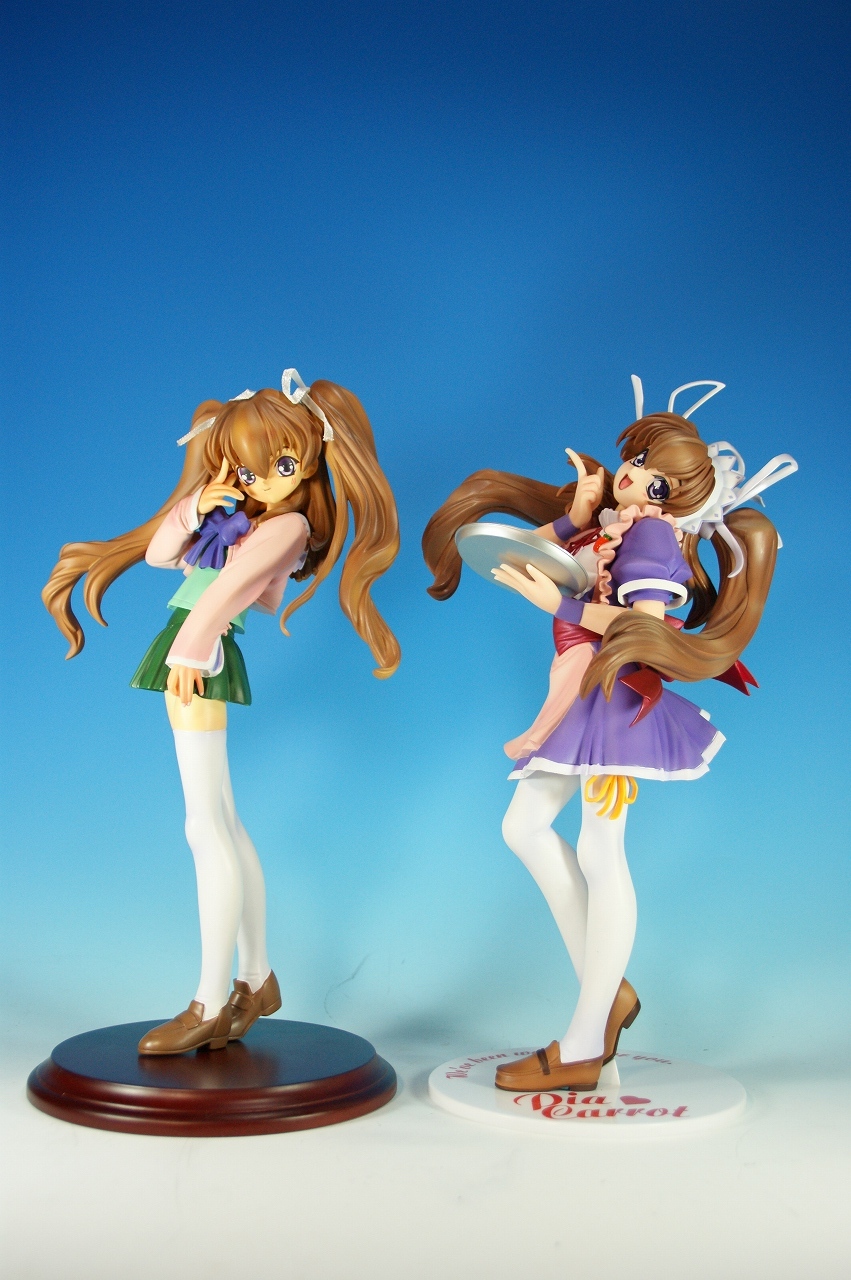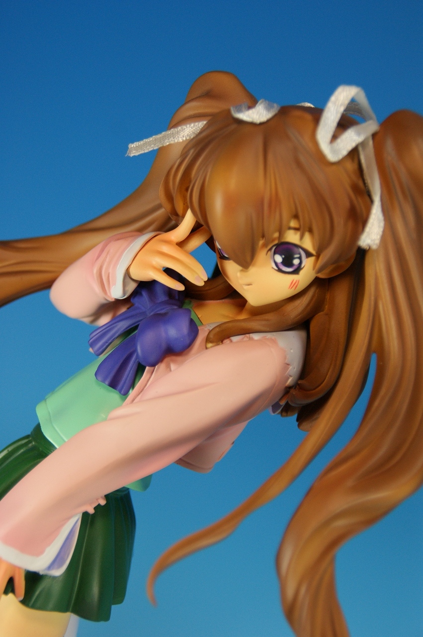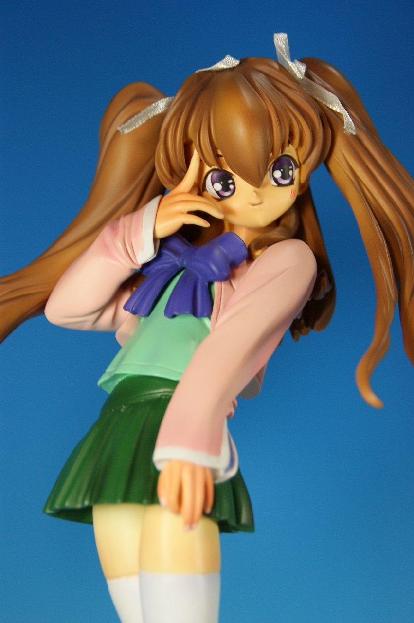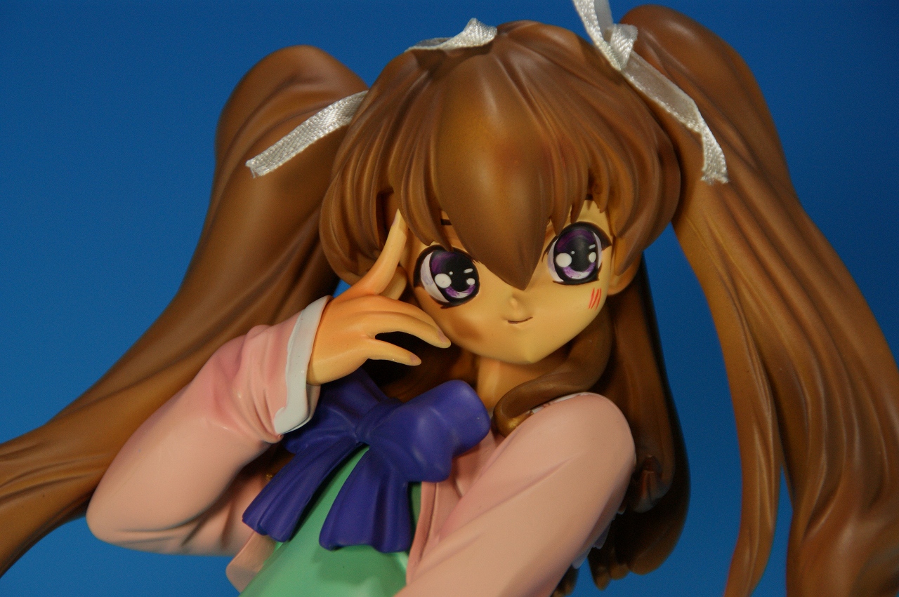 この娘は2008年に開催された「クレイズ萌え~ろ祭」で発売されたようです。 原型師は「みすまる☆ましい」氏ということで、前回の好イメージのため 大須の中古屋に鎮座されていたところを即査収。 外箱は、 白い木箱です。ゲームタイトルが金色で箔押ししているようです。 この箱自体も紙の箱に入っていたのですが、保存状態が悪いため (中古のため)割愛。 開けてみると、 こんな感じ~。新品じゃないので雰囲気だけでも。豪華に感じます。 では、ぐるりと一周。 愛沢ともみと言えばツインテール。このボリューム感がとても目を引きます。 また、動きが少ないポーズの中で、あどけない愛らしさがにじみ出ています。 ちょっとアップで。 手の甲が半分隠れる袖が、とても良い感じ。 リボンが布製なので、個人個人で調整が必要かも。 指や手が、 造型が甘い上、妙に赤味かかっていて大変残念。 造型はまだしも色味がコレだけ違うのは・・・。 足元は結構よい造り。 ウェーブ版と並べてみると、 同じ人の作品で、同じモチーフでも違いが出るので面白いです。 以上、 「クレイズ 愛沢ともみ 私服版」でした~。 細かいところに粗はありますが、「みすまる☆ましい」氏のともみ嬢はとても愛らしいですね。 今回、中身未確認で、原型師名義のみ、知識なしの購入に踏み込みましたが、結構満足。 今までは店頭パッケージやHPの写真なんかで見ながら感性で購入してましたが、 これからは、原型師さんをもっと注目してみようかな。同じ結果かもしれないけどね。