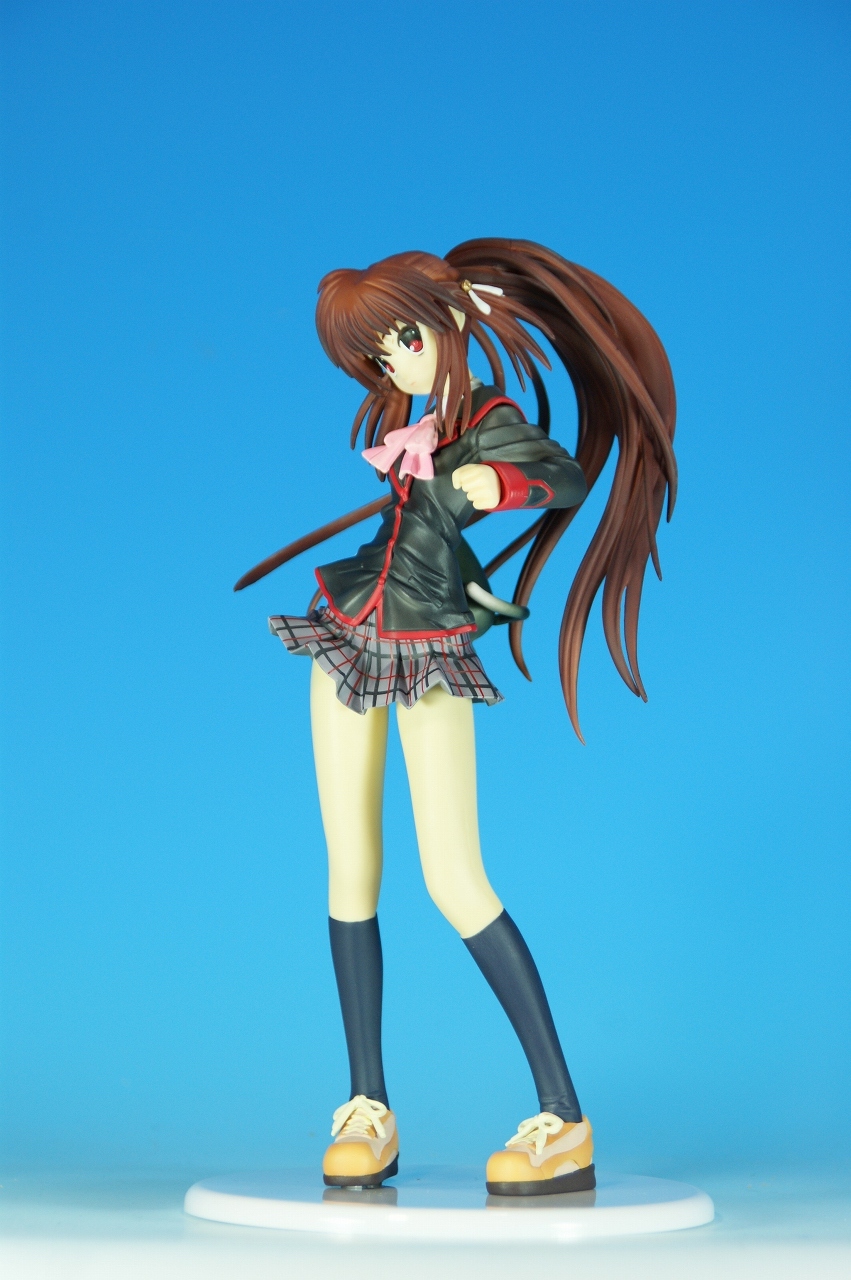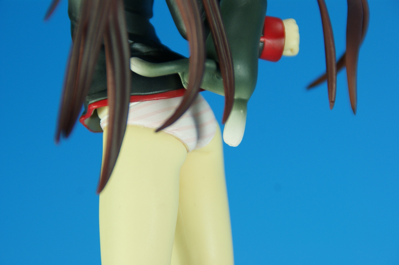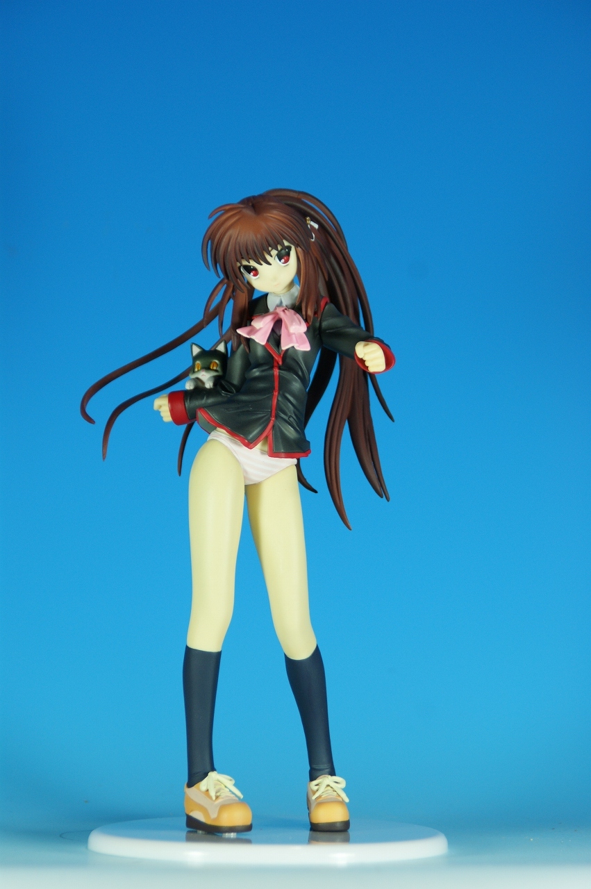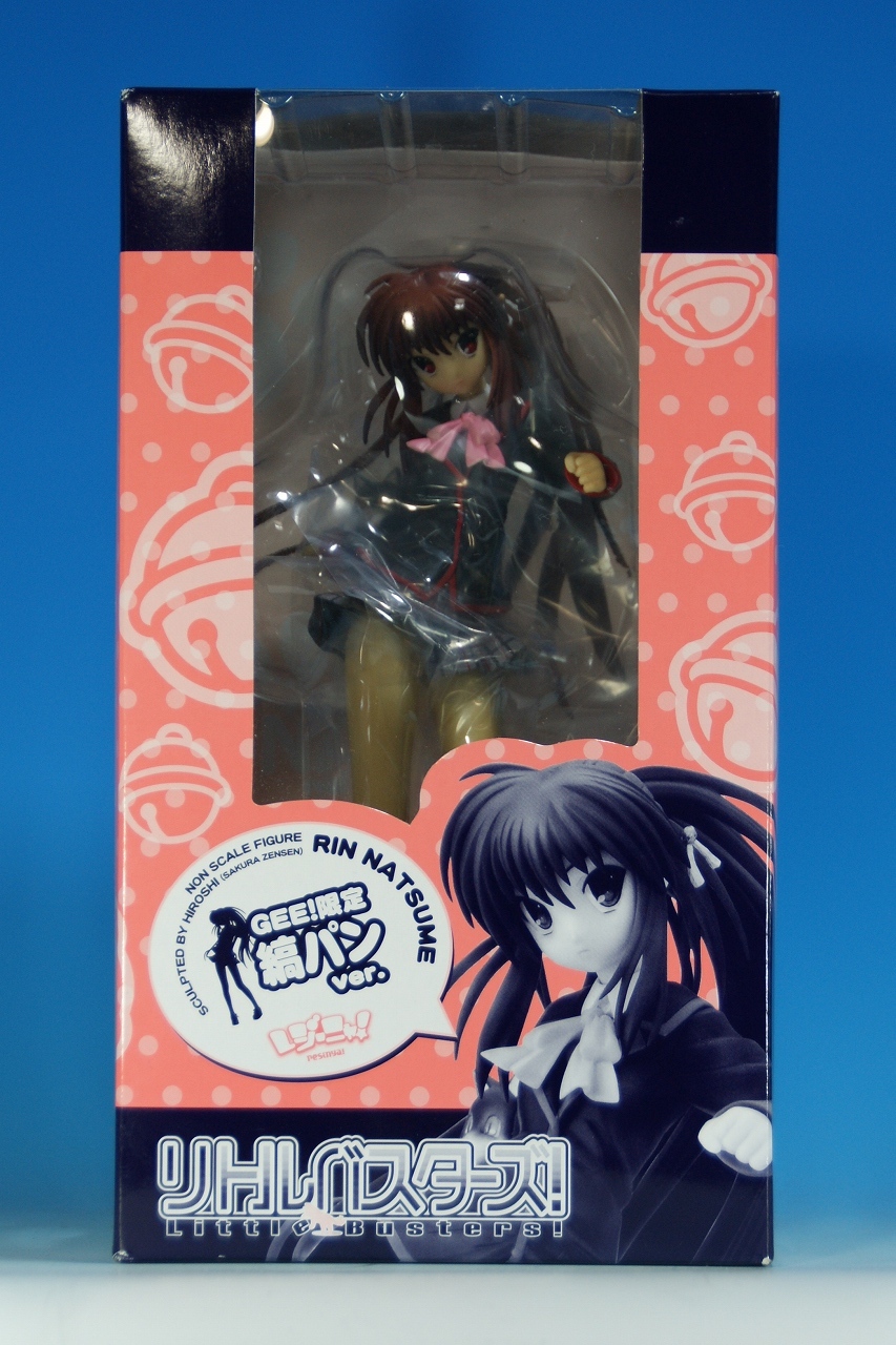 「リトルバスターズ! 棗 鈴 GEE!限定縞パンVer.」です。 原型師は桜前線のひろしさん。 まずは、箱から。 レジーニャ準拠の地味めな箱です。 全体に、鈴をあしらっています。 箱の横には、 猫の肉球型の小窓が可愛いですね。 中身は ほぼ完成品状態。付属品はありませんね。 では、ぐるりと一周~♪ 全体的な動きは少なめですが、ポニーテールのなびき方や上半身のひねり、 スカートの翻りで綺麗に動の姿をイメージさせますね。 ちょっとアップで、 髪飾りの鈴も、ちゃんとそれらしく。 服のシワがひねりの表現を魅力的にしてます。 露骨でないスカートの翻り加減もいい感じです。 身だしなみは足元から。 靴の出来が良いですね。 そして何より、 猫が実に愛らしい。 グラデーションがとっても良い具合です。 で、いつものように、 スカートが外れるのですが、 タイトルのとおり、 ピンクの縞パンでした。 (*ノノ) キャッ ぐるっと一周すると、 健康的な感じはするけど、あんまりえちぃ感じはしませんねぇ。 やっぱり可愛らしい。 以上、「リトルバスターズ! 棗 鈴 GEE!限定縞パンVer.」でした~。 桜前線のひろしさんの作品は、どんどん出来が良くなっていますねぇ。 これはアトリエ彩のエセルドレーダも購入すべきかなぁ?