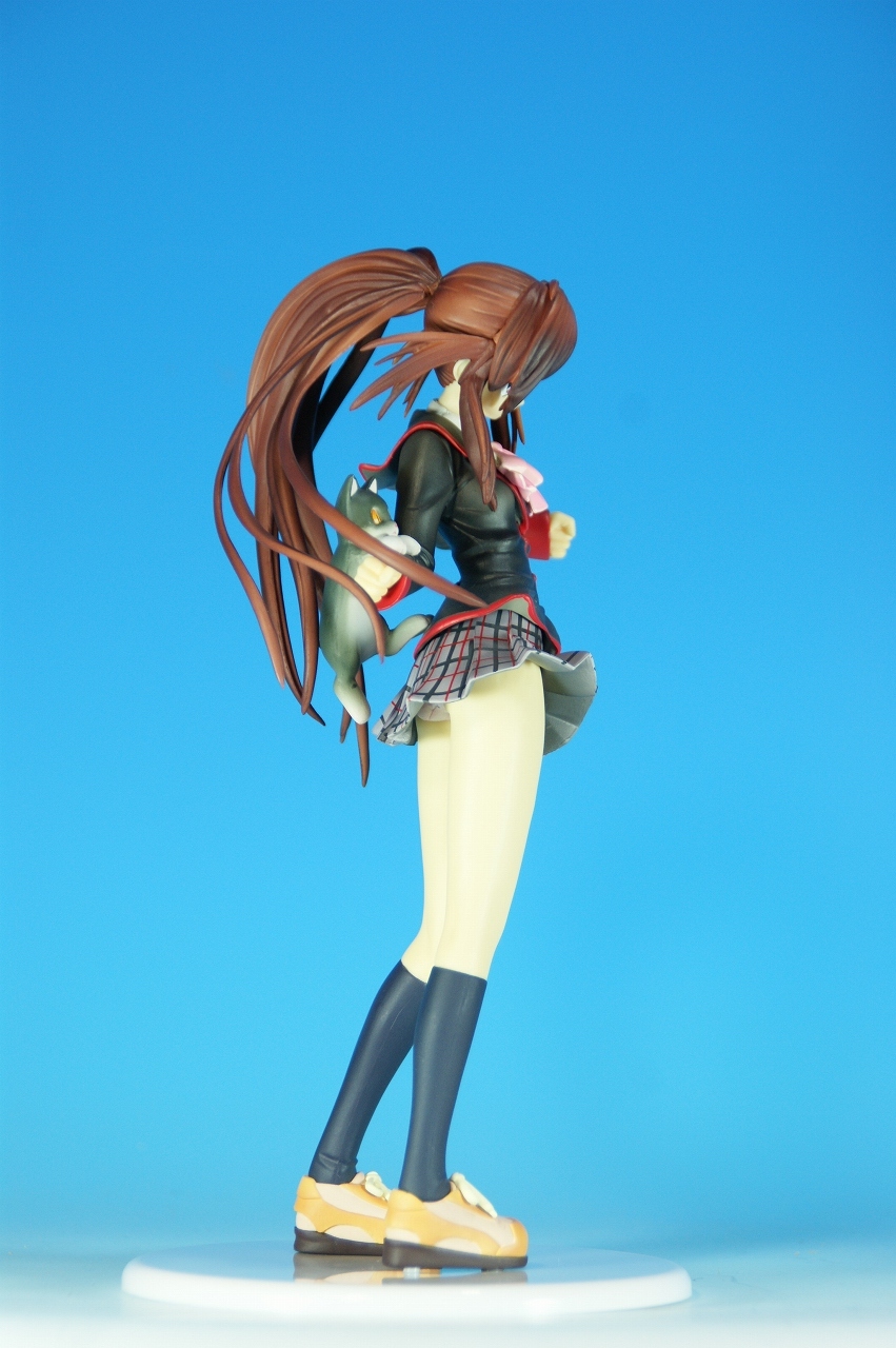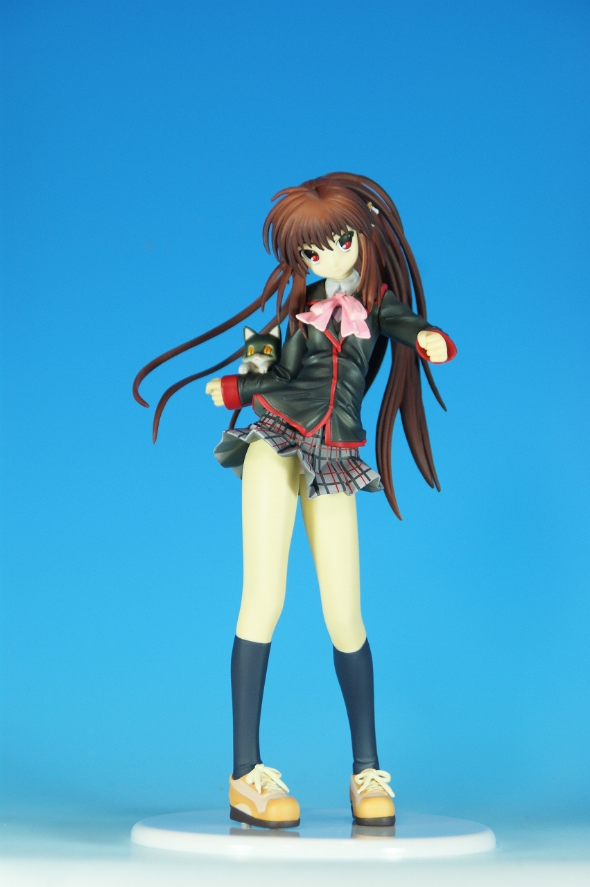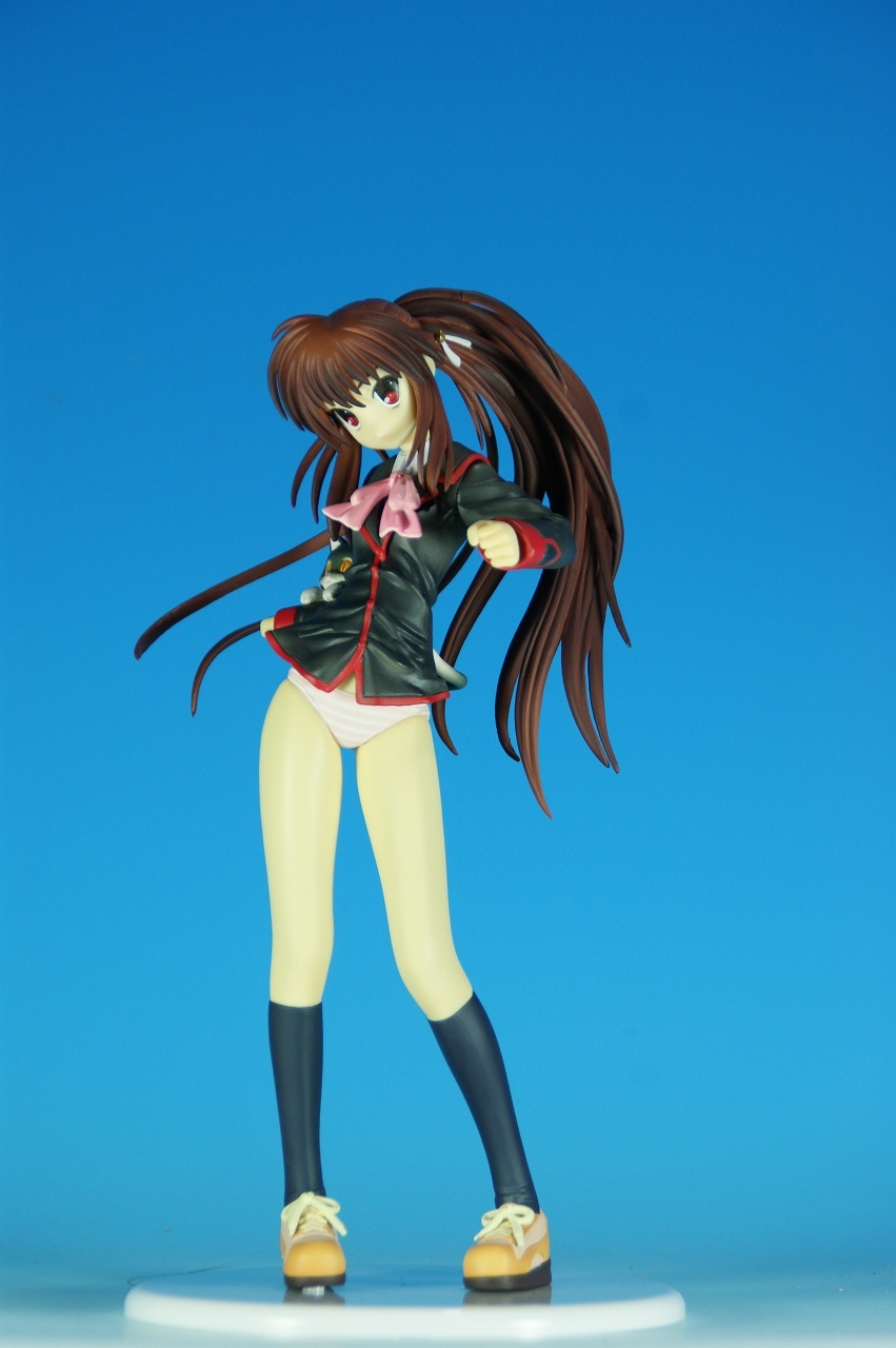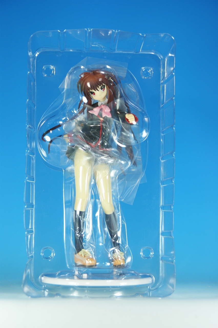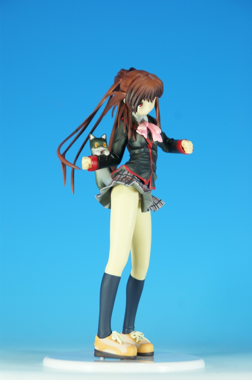 「リトルバスターズ! 棗 鈴 GEE!限定縞パンVer.」です。 原型師は桜前線のひろしさん。 まずは、箱から。 レジーニャ準拠の地味めな箱です。 全体に、鈴をあしらっています。 箱の横には、 猫の肉球型の小窓が可愛いですね。 中身は ほぼ完成品状態。付属品はありませんね。 では、ぐるりと一周~♪ 全体的な動きは少なめですが、ポニーテールのなびき方や上半身のひねり、 スカートの翻りで綺麗に動の姿をイメージさせますね。 ちょっとアップで、 髪飾りの鈴も、ちゃんとそれらしく。 服のシワがひねりの表現を魅力的にしてます。 露骨でないスカートの翻り加減もいい感じです。 身だしなみは足元から。 靴の出来が良いですね。 そして何より、 猫が実に愛らしい。 グラデーションがとっても良い具合です。 で、いつものように、 スカートが外れるのですが、 タイトルのとおり、 ピンクの縞パンでした。 (*ノノ) キャッ ぐるっと一周すると、 健康的な感じはするけど、あんまりえちぃ感じはしませんねぇ。 やっぱり可愛らしい。 以上、「リトルバスターズ! 棗 鈴 GEE!限定縞パンVer.」でした~。 桜前線のひろしさんの作品は、どんどん出来が良くなっていますねぇ。 これはアトリエ彩のエセルドレーダも購入すべきかなぁ?