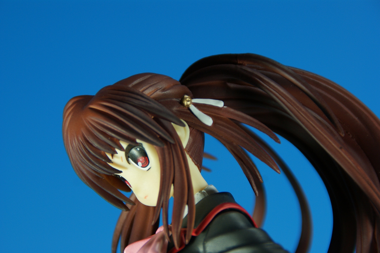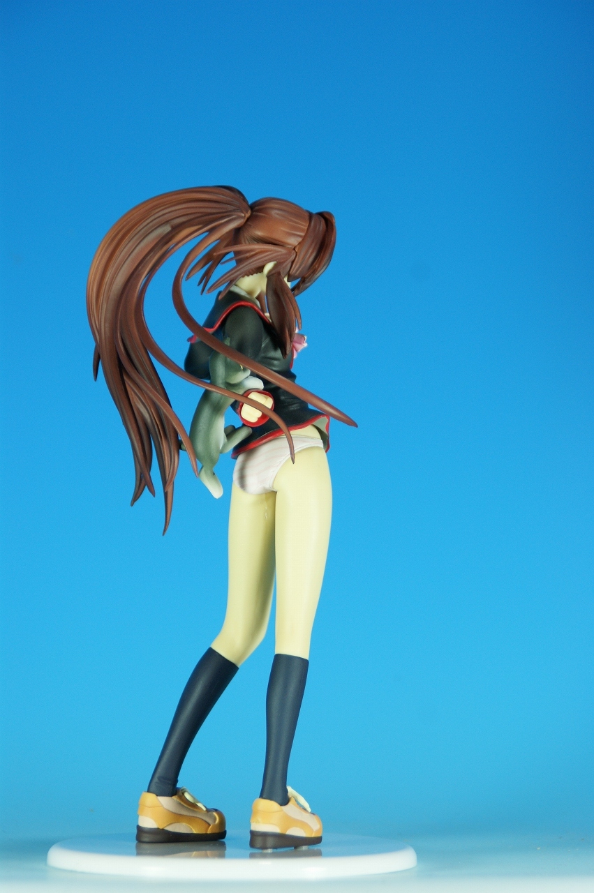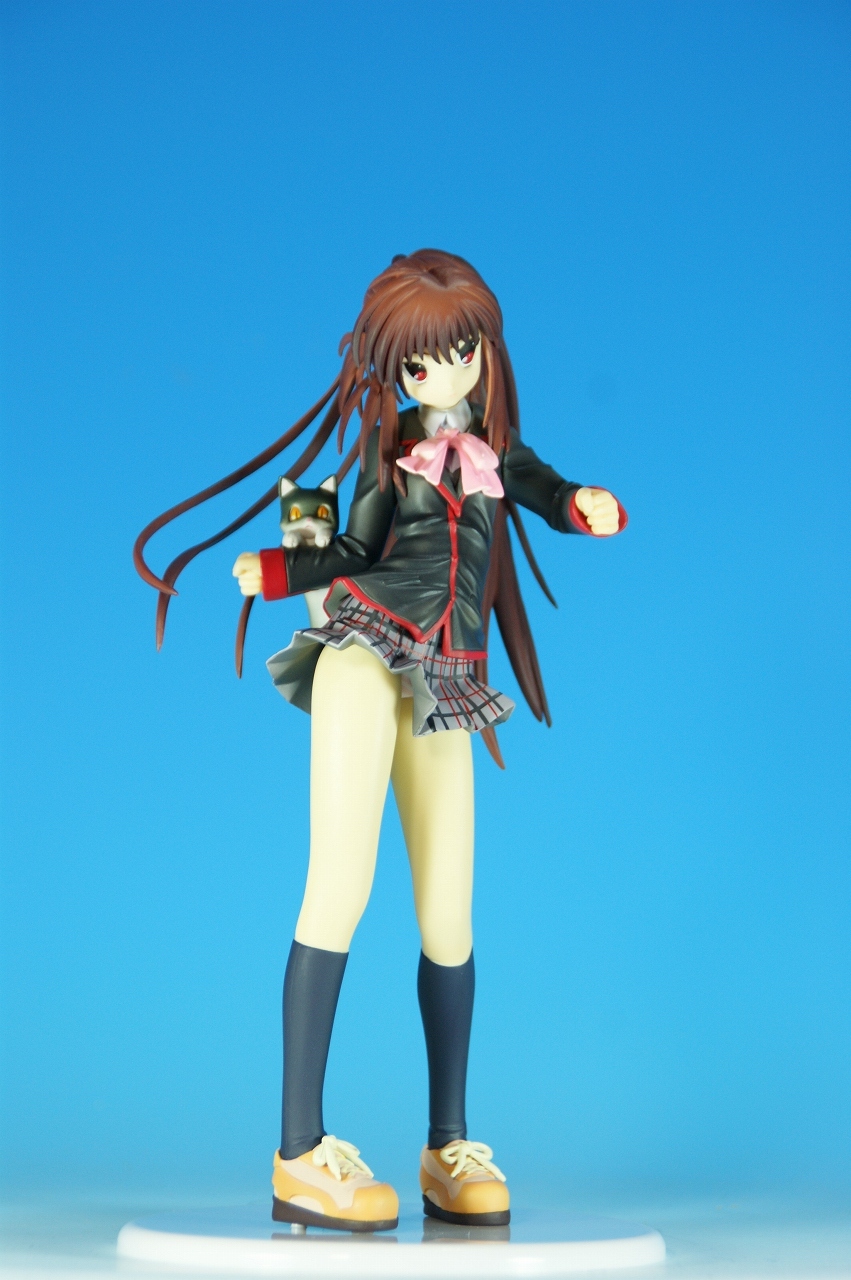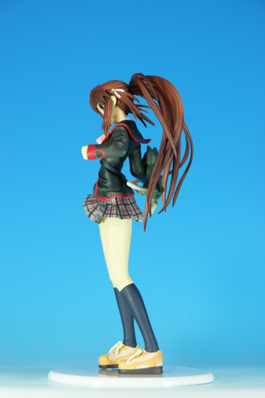 「リトルバスターズ! 棗 鈴 GEE!限定縞パンVer.」です。 原型師は桜前線のひろしさん。 まずは、箱から。 レジーニャ準拠の地味めな箱です。 全体に、鈴をあしらっています。 箱の横には、 猫の肉球型の小窓が可愛いですね。 中身は ほぼ完成品状態。付属品はありませんね。 では、ぐるりと一周~♪ 全体的な動きは少なめですが、ポニーテールのなびき方や上半身のひねり、 スカートの翻りで綺麗に動の姿をイメージさせますね。 ちょっとアップで、 髪飾りの鈴も、ちゃんとそれらしく。 服のシワがひねりの表現を魅力的にしてます。 露骨でないスカートの翻り加減もいい感じです。 身だしなみは足元から。 靴の出来が良いですね。 そして何より、 猫が実に愛らしい。 グラデーションがとっても良い具合です。 で、いつものように、 スカートが外れるのですが、 タイトルのとおり、 ピンクの縞パンでした。 (*ノノ) キャッ ぐるっと一周すると、 健康的な感じはするけど、あんまりえちぃ感じはしませんねぇ。 やっぱり可愛らしい。 以上、「リトルバスターズ! 棗 鈴 GEE!限定縞パンVer.」でした~。 桜前線のひろしさんの作品は、どんどん出来が良くなっていますねぇ。 これはアトリエ彩のエセルドレーダも購入すべきかなぁ?