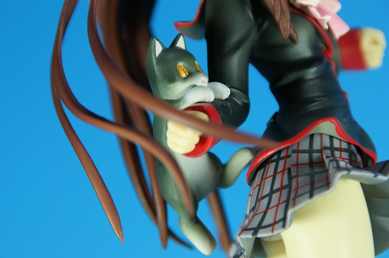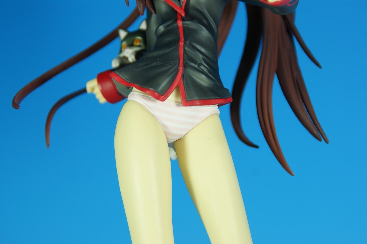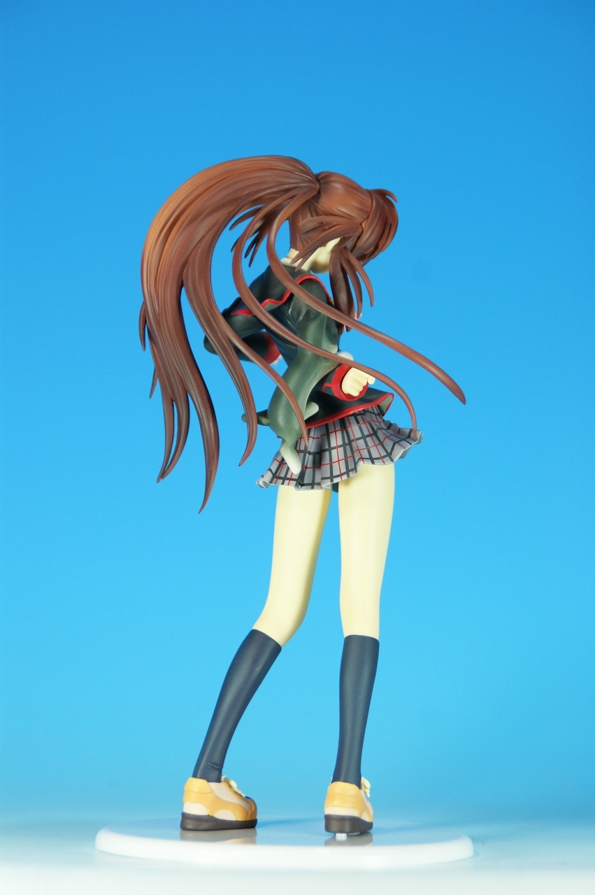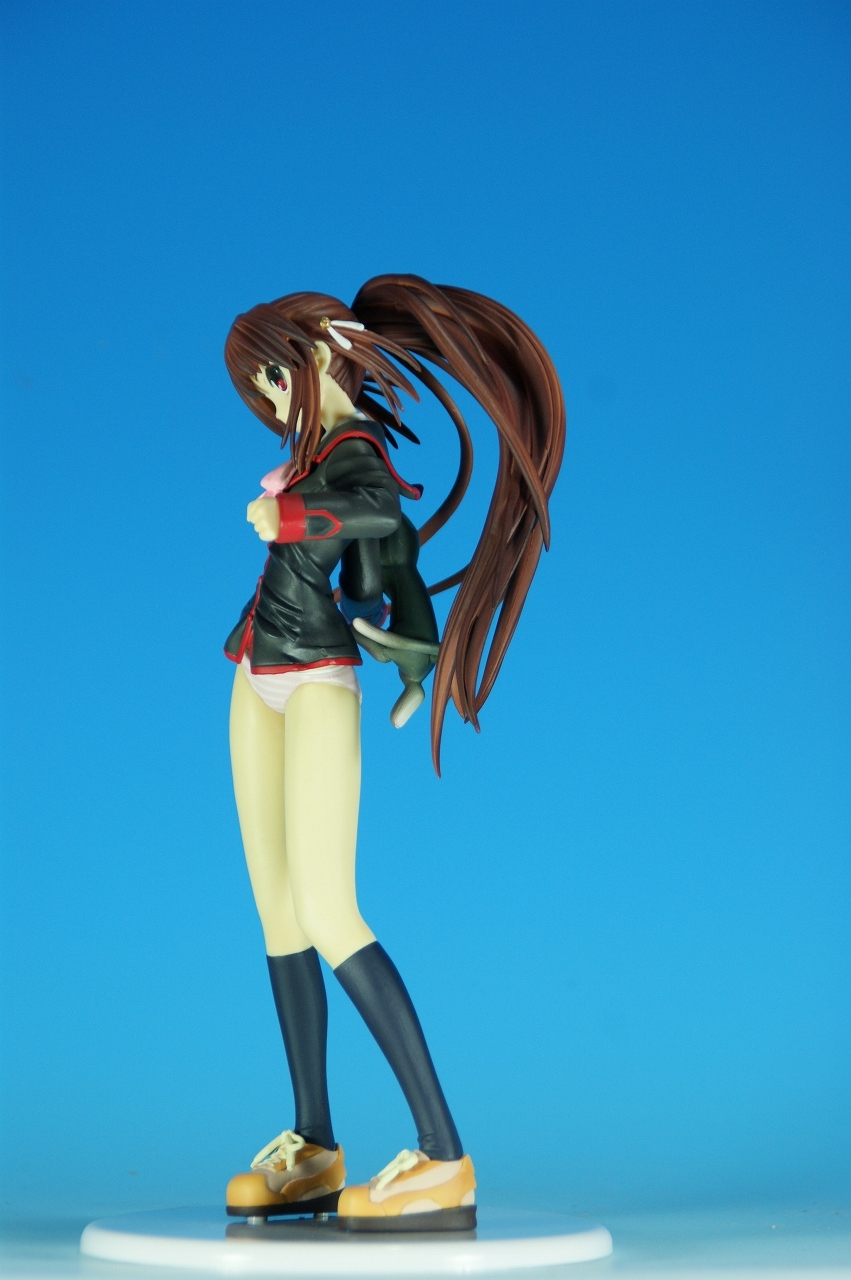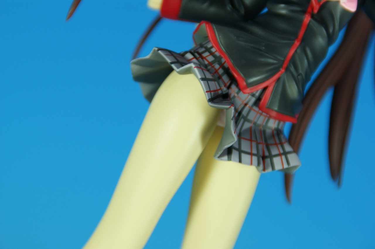 「リトルバスターズ! 棗 鈴 GEE!限定縞パンVer.」です。 原型師は桜前線のひろしさん。 まずは、箱から。 レジーニャ準拠の地味めな箱です。 全体に、鈴をあしらっています。 箱の横には、 猫の肉球型の小窓が可愛いですね。 中身は ほぼ完成品状態。付属品はありませんね。 では、ぐるりと一周~♪ 全体的な動きは少なめですが、ポニーテールのなびき方や上半身のひねり、 スカートの翻りで綺麗に動の姿をイメージさせますね。 ちょっとアップで、 髪飾りの鈴も、ちゃんとそれらしく。 服のシワがひねりの表現を魅力的にしてます。 露骨でないスカートの翻り加減もいい感じです。 身だしなみは足元から。 靴の出来が良いですね。 そして何より、 猫が実に愛らしい。 グラデーションがとっても良い具合です。 で、いつものように、 スカートが外れるのですが、 タイトルのとおり、 ピンクの縞パンでした。 (*ノノ) キャッ ぐるっと一周すると、 健康的な感じはするけど、あんまりえちぃ感じはしませんねぇ。 やっぱり可愛らしい。 以上、「リトルバスターズ! 棗 鈴 GEE!限定縞パンVer.」でした~。 桜前線のひろしさんの作品は、どんどん出来が良くなっていますねぇ。 これはアトリエ彩のエセルドレーダも購入すべきかなぁ?