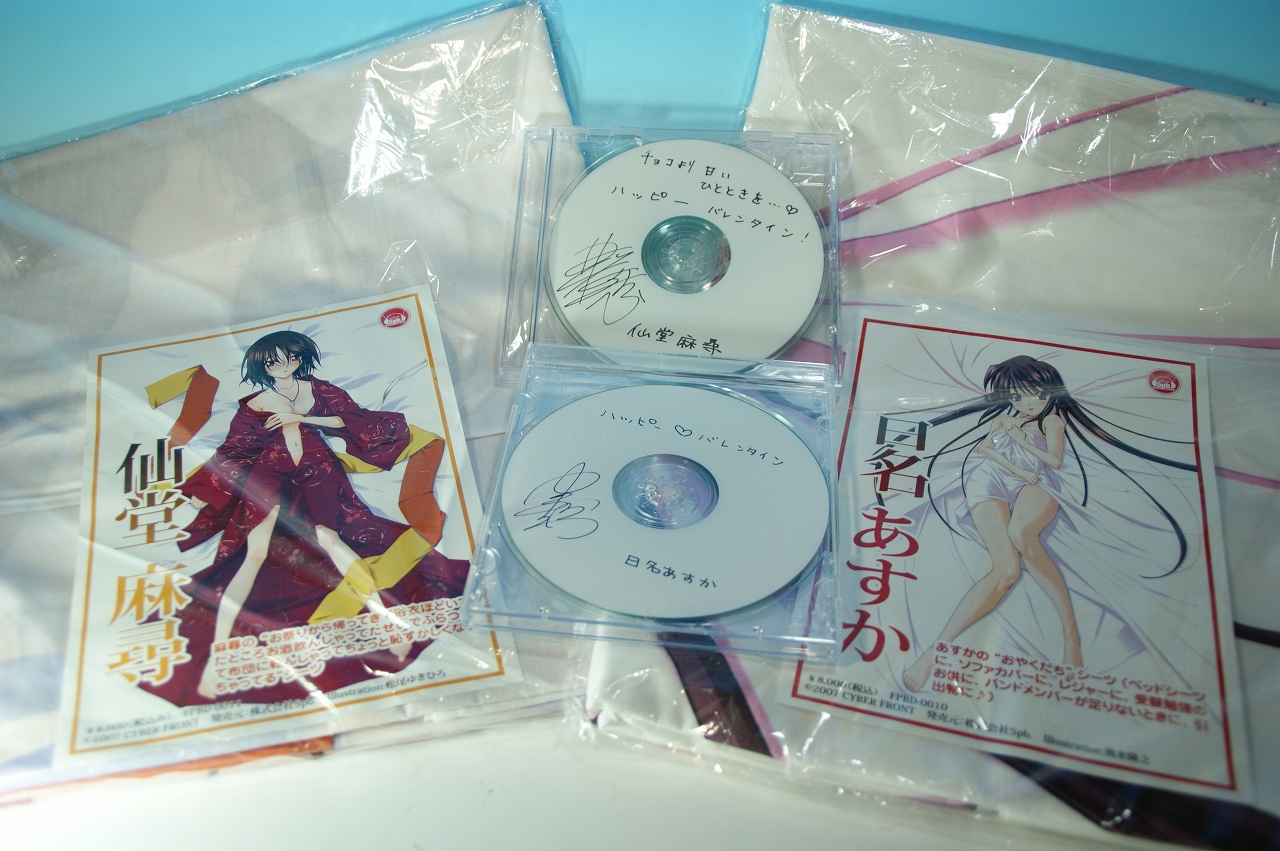 AZURE Toy-Boxさんで、ワンホビ9のレポがあるようで、 WONDERFUL HOBBY LIFE FOR YOU!! 9 レポート で、雰囲気だけでも楽しむことにします。 むふぅ、たしかにドロッセルはいいですねぇ。 スタイルというか、シルエットというか。 また、みっくみくかかみんなど、新作情報も多そうです。 しかし、あきばらいふさんや常時リソース不足さんなどのサイトでは 完全なキャパシティオーバーのようでマナーも酷かったとか。 秋葉原という交通網がいい場所では、もうちょっと考えてイベントすべきですかね。 東京はいいなぁ・・・でも混雑は苦手だしなぁと妄想しながら、 指をくわえながらイベントレポで心を紛らわせると、 hobby-toy-webさんにて、 figma 00♀ archetype:sheをドール素体として利用する! という気になる記事が。 およーふくが換装可能ですとーっ! 最近ドールものにも首を突っ込み始めたのでwktkですよ。 そっかー、全身素体だから、着せ替え可能になるのか~。 と、目から鱗です。 地方民には指をくわえてweb通販待ってろってことか~ orz 通販は15日から!通販は15日から!! 大事なコトなので、2度書きました。 一人3個までじゃ足らないよ! また、バレンタイン当日配送ということで、注文してた ☆あすか&麻尋のバレンタインスペシャル☆ 「あすか添い寝シーツ(あすかの"おやくだち"シーツ)」と、 「麻尋添い寝シーツ(麻尋の"お祭りから帰ってきて浴衣ほどいてたところお酒飲んじゃってたせいでふらついて布団に転んじゃってちょっと恥ずかしくなっちゃってる"シーツ)」 が、届きました! ホントに直筆サイン入り「ささやきボイスCD」付きとは思わなかったなぁ。 てっきりプリント物だと思ってたよ。 中を聞くと・・・・・、音源だけってこんなにもえちぃくなるもんなんだなぁ・・・と。 人の妄想ってすごいね。 それにしても、メモオフがPSで出た当初から考えると、 コンシューマーゲームでこんなグッズが出るようになるとは思いもよらないですね。 仕事漬けでつらいのですよ~♪