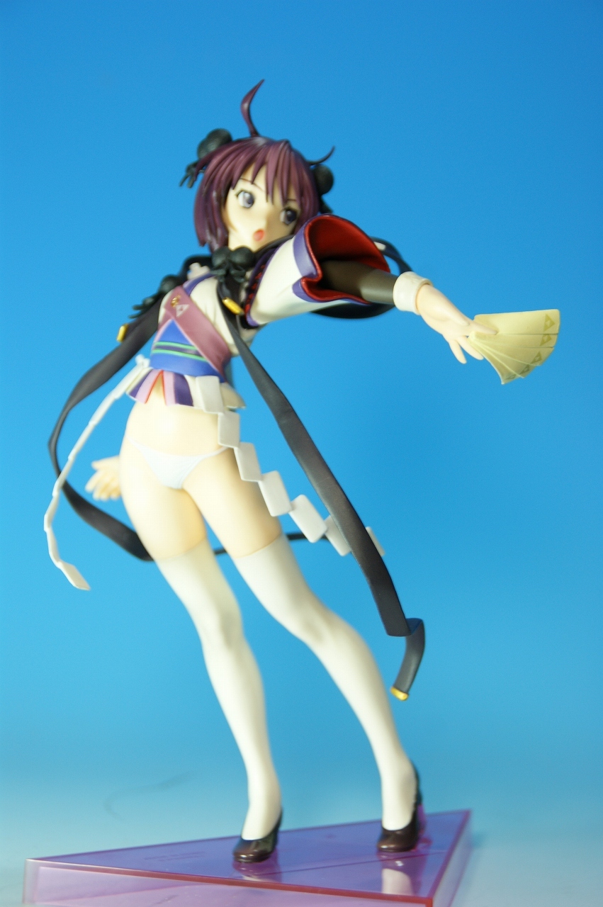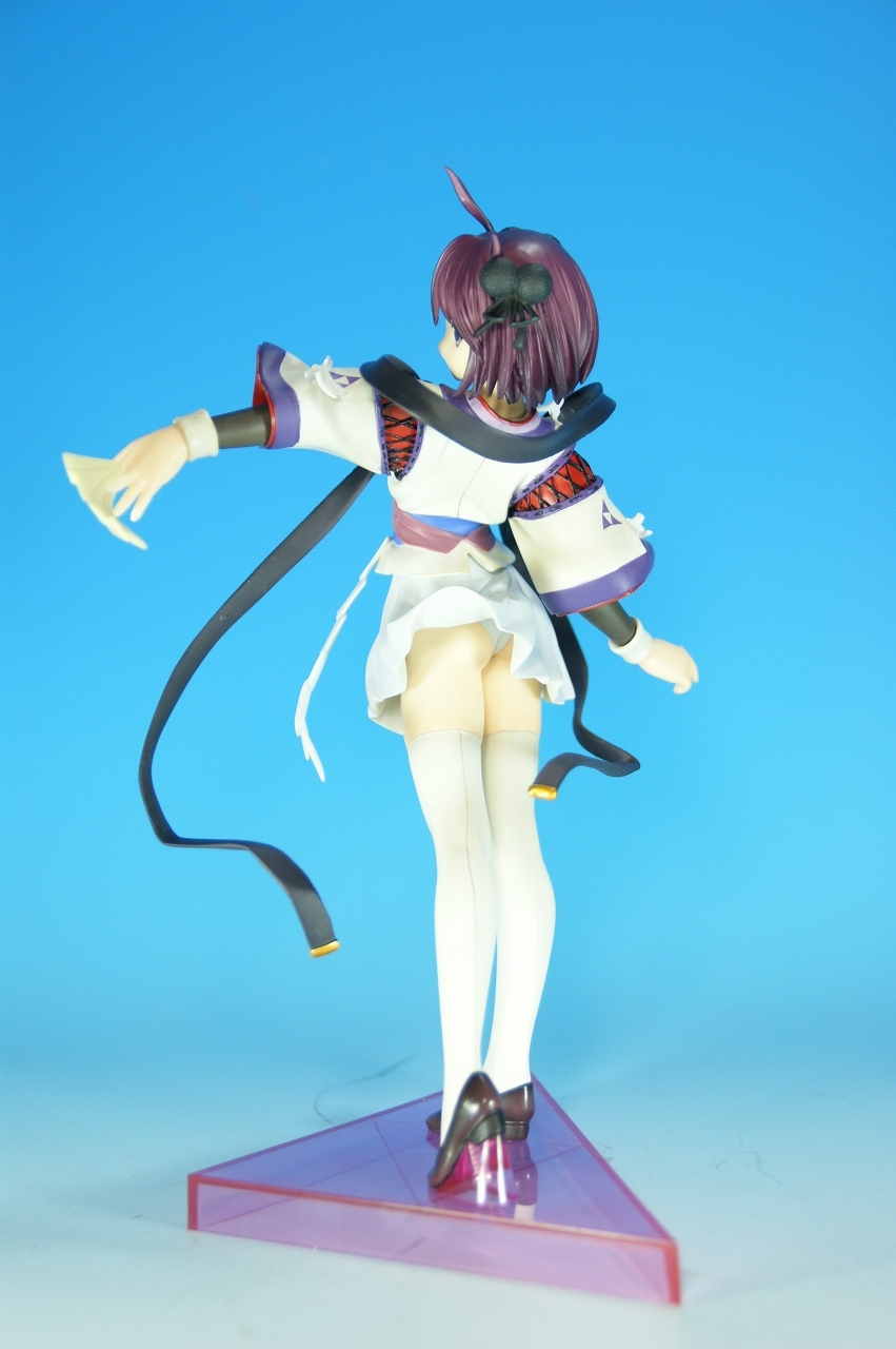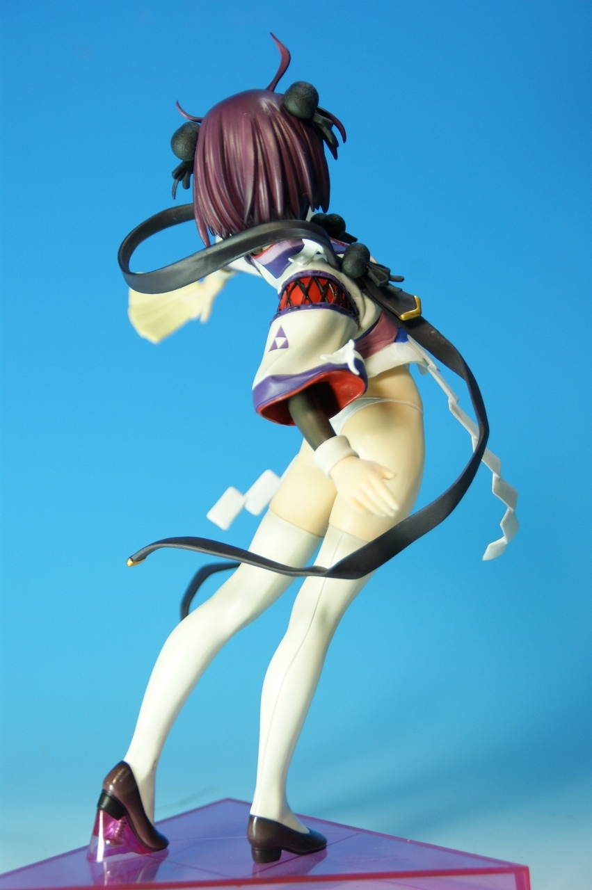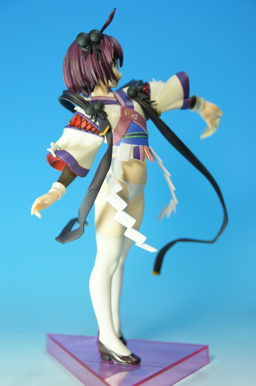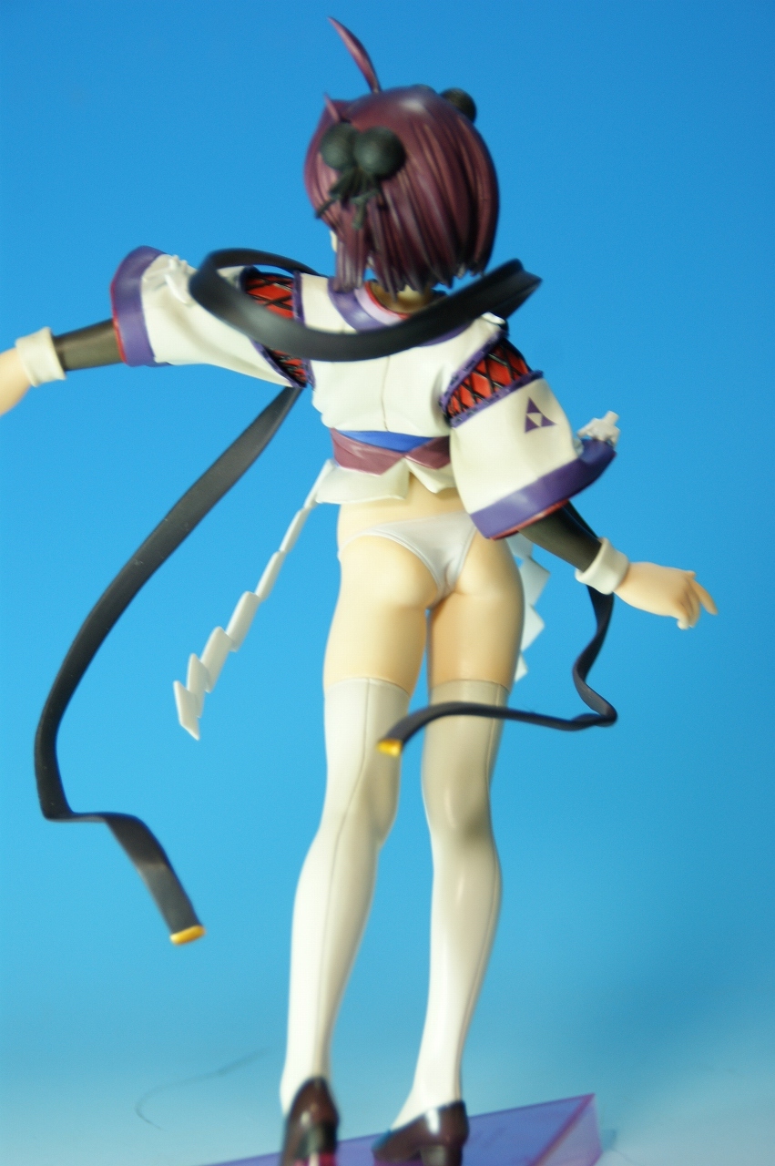 いつもどおり箱から~。 戦国ランスのキャラクターだけあって、落ち着いた雰囲気の箱ですね~。 中身は、 本体のみ!針金できっちり固定されてます。 では、ぐるりと一周。 どの角度から見ても、特に違和感なし。いい仕事しています。 アップでは、 髪飾りや肩口などが、やっつけ仕事になってないのが好印象。 地味に手間がかかりそうです。 袖にいる式神も、それと良くわかるいい作りです。 お胸は薄めなお嬢さんです。着物の襟元がが綺麗に見えるので、コレでいいのかな? で、寿屋準拠らしいのですが、 この娘さんもスカートが外れます。 白いおパンチュがまぶしいです。 (*ノノ) キャッ また 紐が細ッ! 布面積少なっ! 二十歳前の年頃の娘さんが・・・・・。 以上、寿屋「戦国ランス 南条蘭」でした。 ALICESOFT も、戦国ランスのキャラクターで完成品がたくさん発売されるようになりましたねぇ。 ランスシリーズの古参も増えてくれると喜ばしいのですがね。