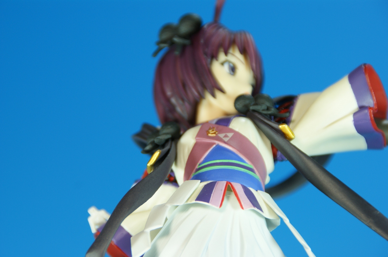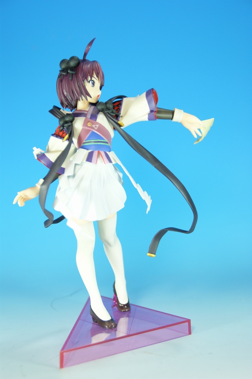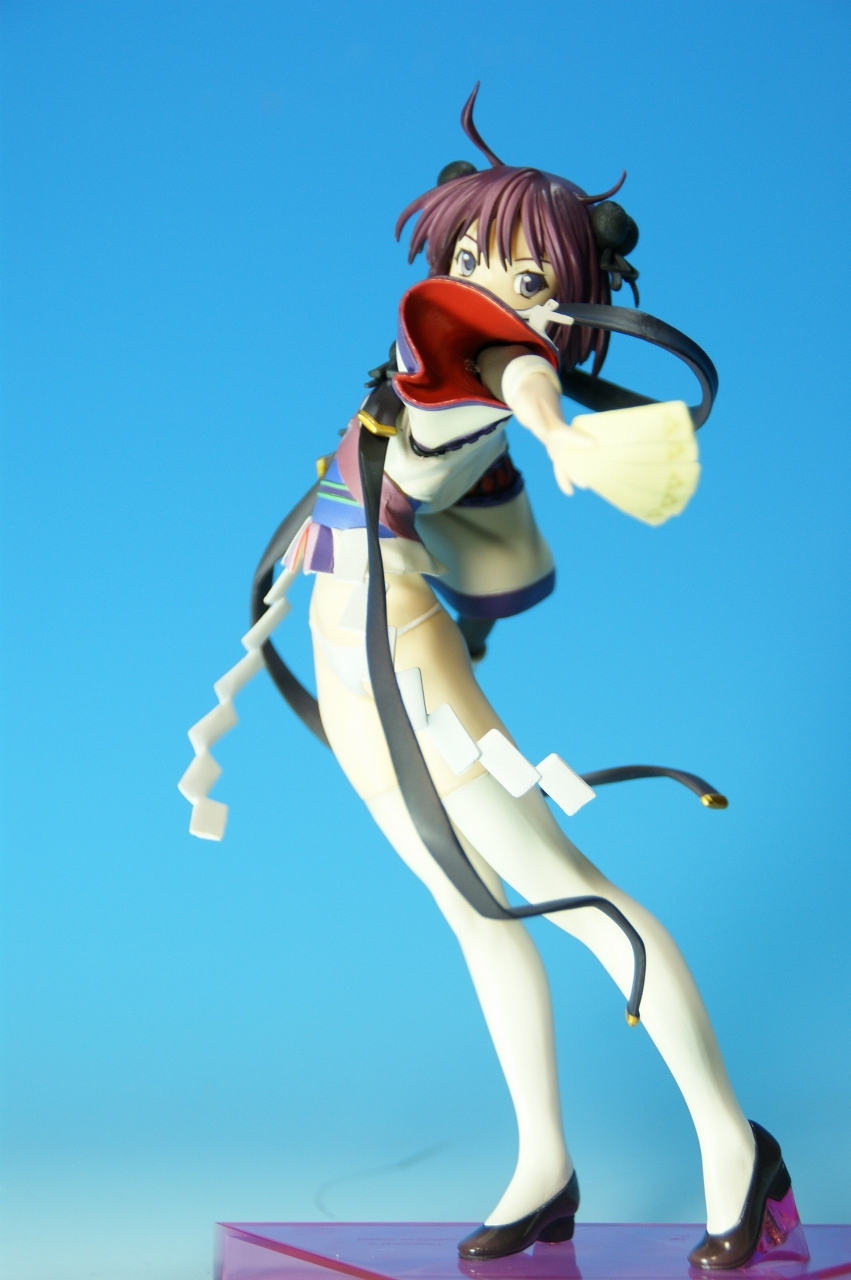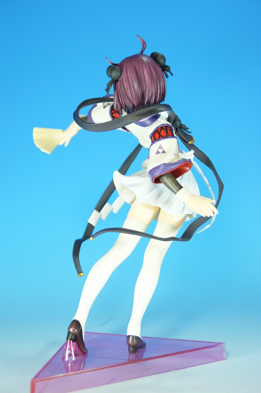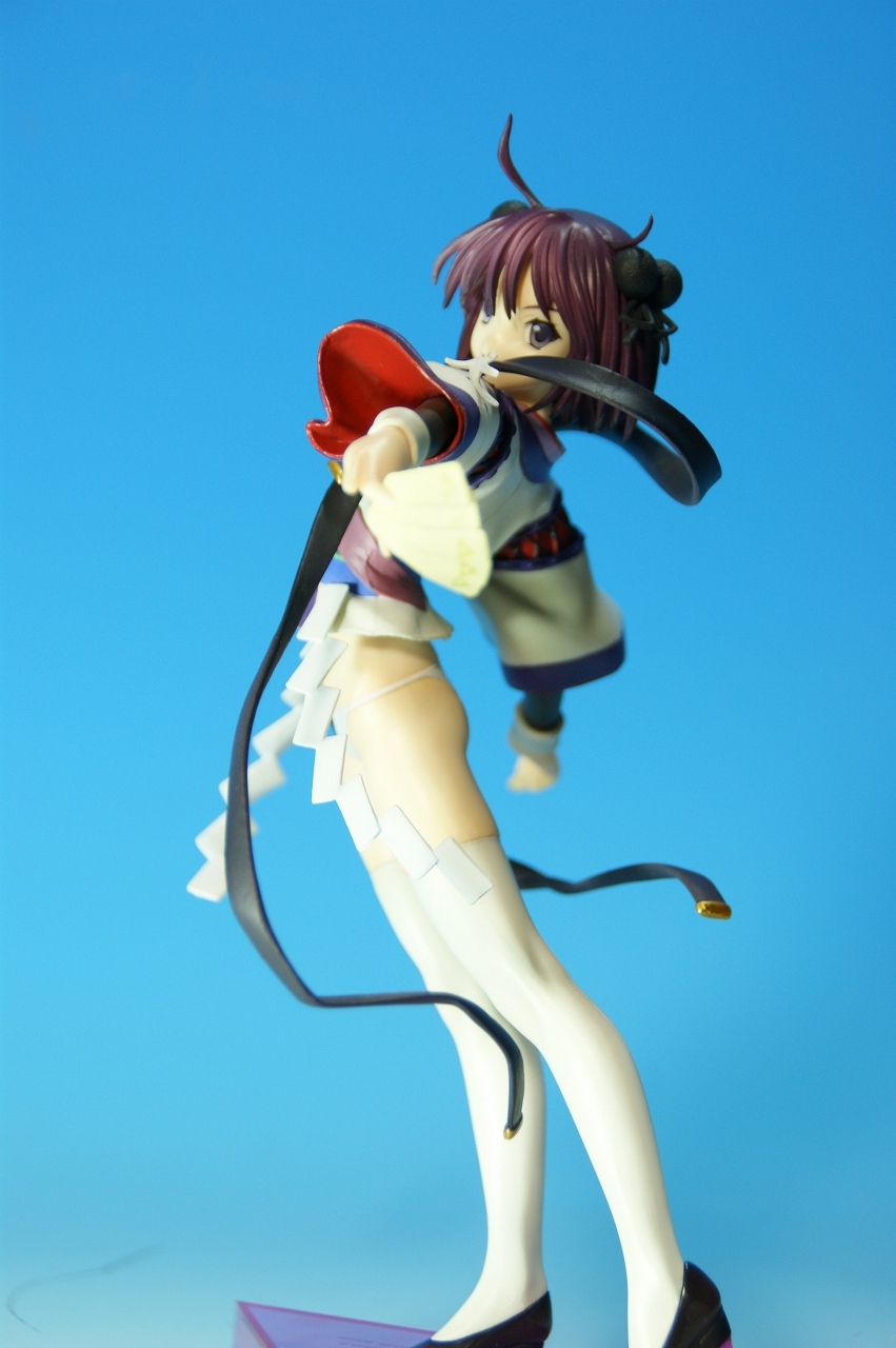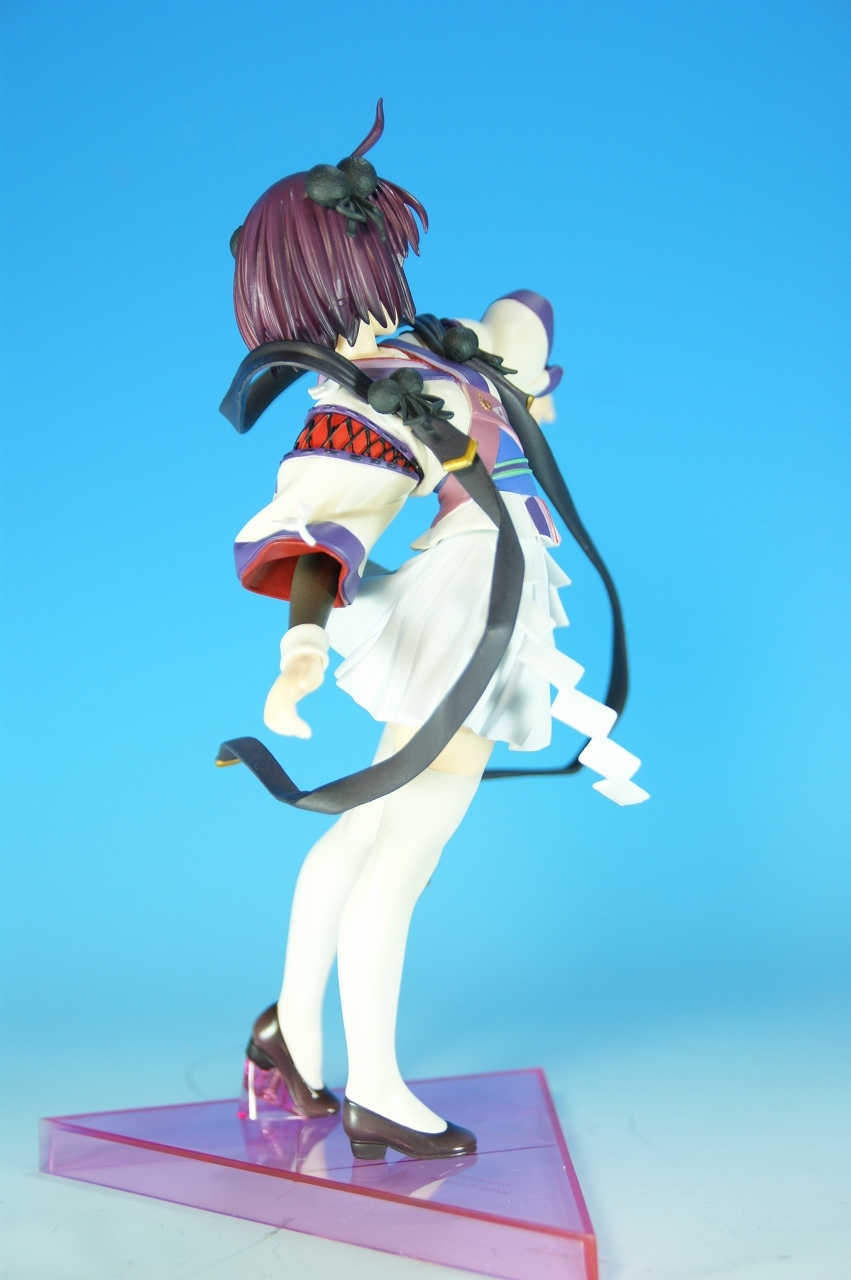 いつもどおり箱から~。 戦国ランスのキャラクターだけあって、落ち着いた雰囲気の箱ですね~。 中身は、 本体のみ!針金できっちり固定されてます。 では、ぐるりと一周。 どの角度から見ても、特に違和感なし。いい仕事しています。 アップでは、 髪飾りや肩口などが、やっつけ仕事になってないのが好印象。 地味に手間がかかりそうです。 袖にいる式神も、それと良くわかるいい作りです。 お胸は薄めなお嬢さんです。着物の襟元がが綺麗に見えるので、コレでいいのかな? で、寿屋準拠らしいのですが、 この娘さんもスカートが外れます。 白いおパンチュがまぶしいです。 (*ノノ) キャッ また 紐が細ッ! 布面積少なっ! 二十歳前の年頃の娘さんが・・・・・。 以上、寿屋「戦国ランス 南条蘭」でした。 ALICESOFT も、戦国ランスのキャラクターで完成品がたくさん発売されるようになりましたねぇ。 ランスシリーズの古参も増えてくれると喜ばしいのですがね。