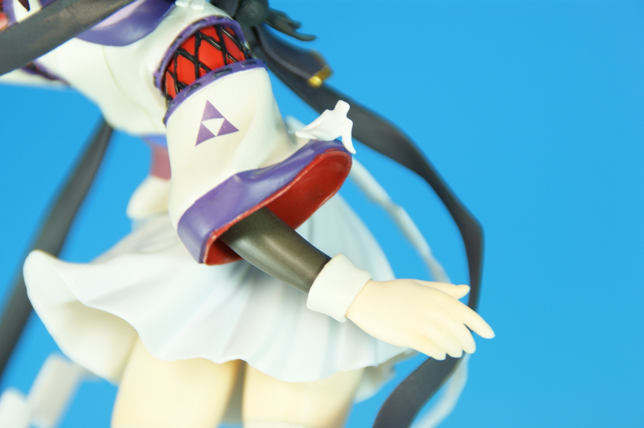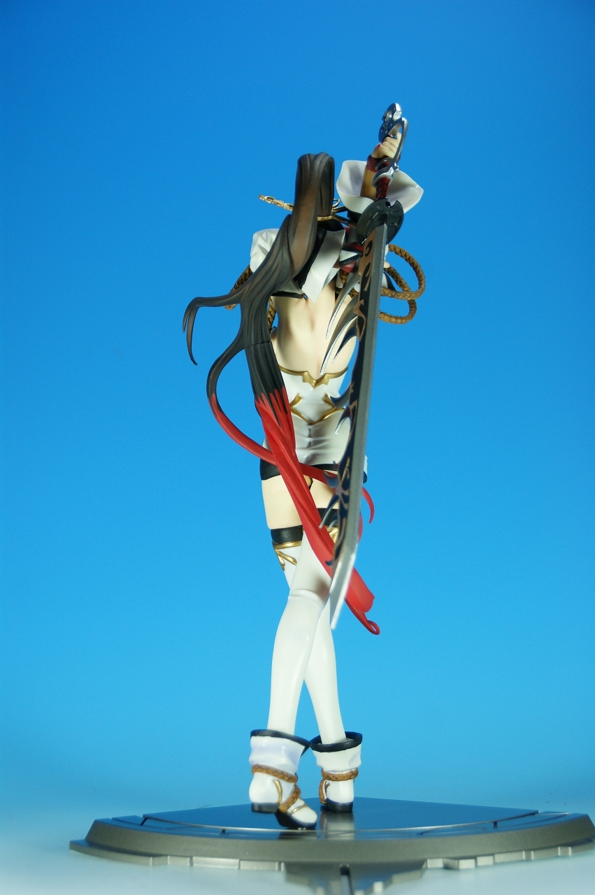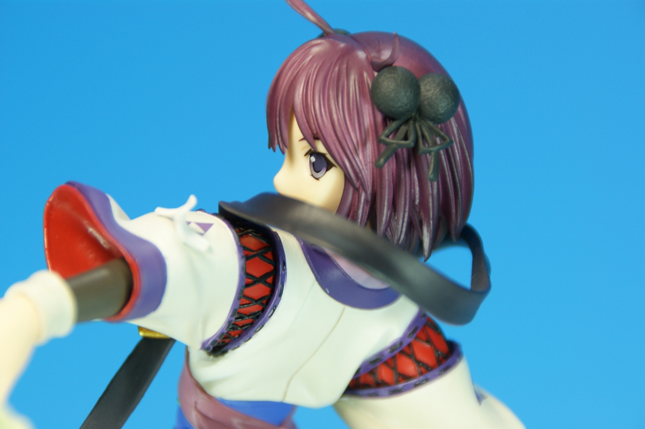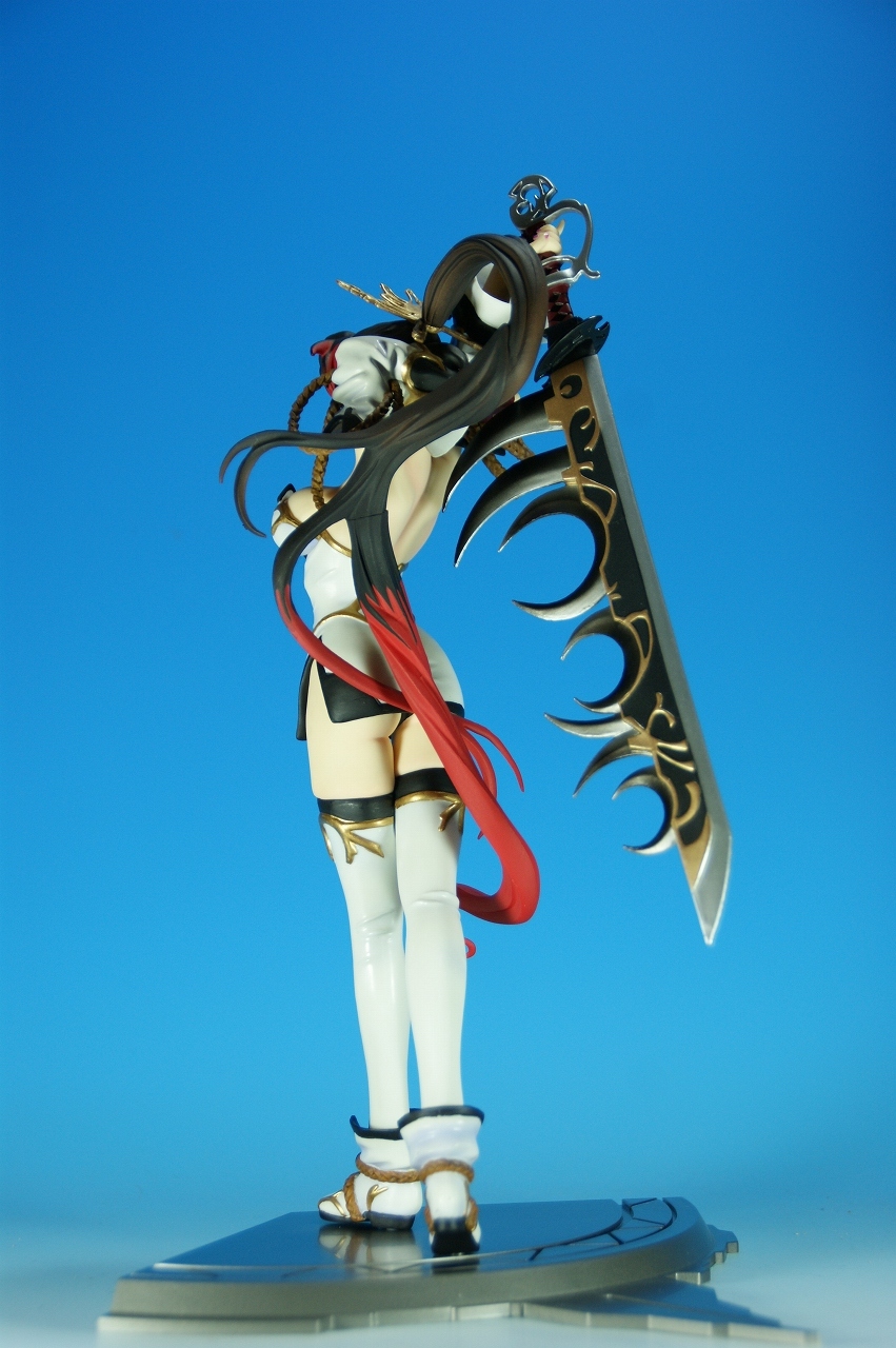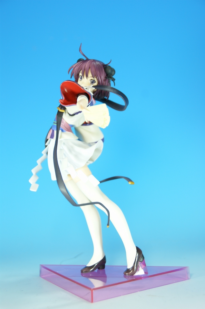 いつもどおり箱から~。 戦国ランスのキャラクターだけあって、落ち着いた雰囲気の箱ですね~。 中身は、 本体のみ!針金できっちり固定されてます。 では、ぐるりと一周。 どの角度から見ても、特に違和感なし。いい仕事しています。 アップでは、 髪飾りや肩口などが、やっつけ仕事になってないのが好印象。 地味に手間がかかりそうです。 袖にいる式神も、それと良くわかるいい作りです。 お胸は薄めなお嬢さんです。着物の襟元がが綺麗に見えるので、コレでいいのかな? で、寿屋準拠らしいのですが、 この娘さんもスカートが外れます。 白いおパンチュがまぶしいです。 (*ノノ) キャッ また 紐が細ッ! 布面積少なっ! 二十歳前の年頃の娘さんが・・・・・。 以上、寿屋「戦国ランス 南条蘭」でした。 ALICESOFT も、戦国ランスのキャラクターで完成品がたくさん発売されるようになりましたねぇ。 ランスシリーズの古参も増えてくれると喜ばしいのですがね。