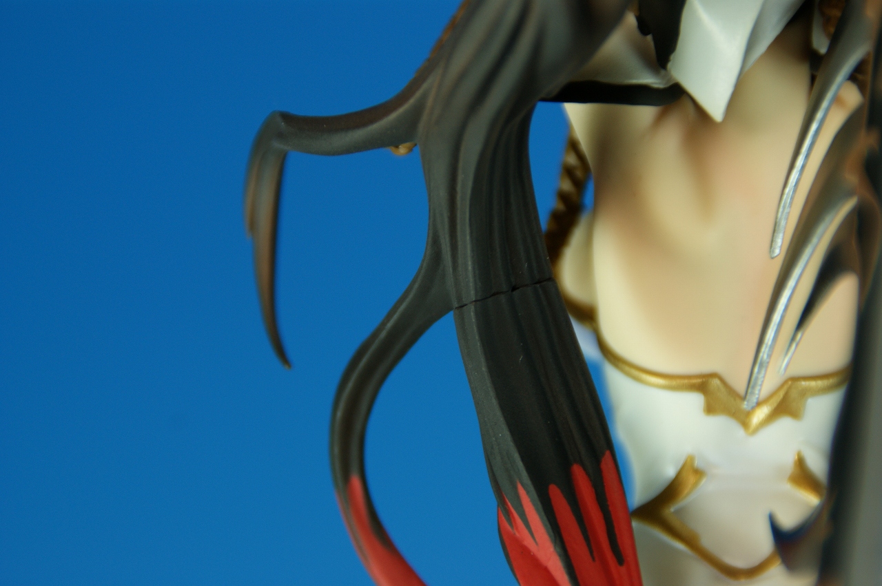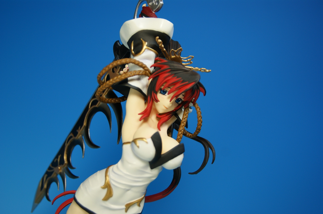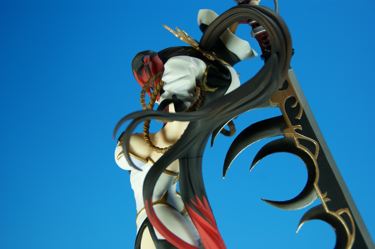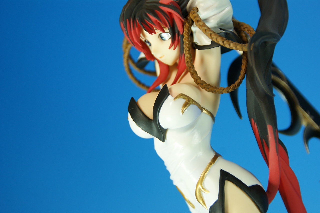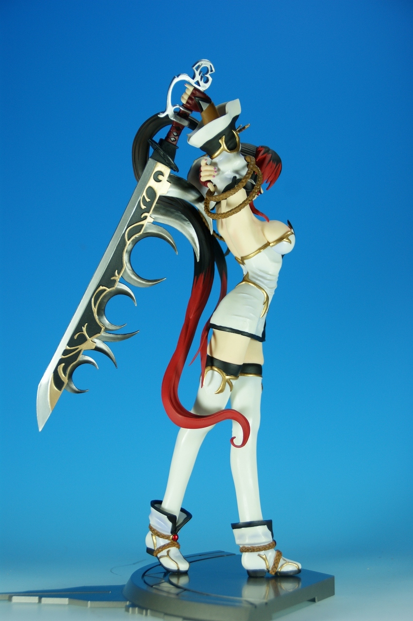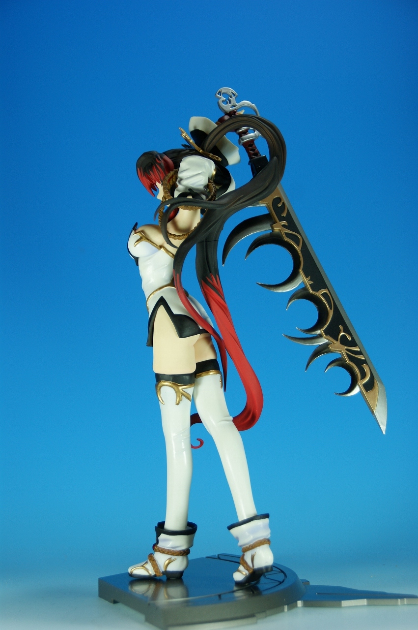 いつもどおり箱から~。 戦国ランスのキャラクターだけあって、落ち着いた雰囲気の箱ですね~。 中身は、 本体のみ!針金できっちり固定されてます。 では、ぐるりと一周。 どの角度から見ても、特に違和感なし。いい仕事しています。 アップでは、 髪飾りや肩口などが、やっつけ仕事になってないのが好印象。 地味に手間がかかりそうです。 袖にいる式神も、それと良くわかるいい作りです。 お胸は薄めなお嬢さんです。着物の襟元がが綺麗に見えるので、コレでいいのかな? で、寿屋準拠らしいのですが、 この娘さんもスカートが外れます。 白いおパンチュがまぶしいです。 (*ノノ) キャッ また 紐が細ッ! 布面積少なっ! 二十歳前の年頃の娘さんが・・・・・。 以上、寿屋「戦国ランス 南条蘭」でした。 ALICESOFT も、戦国ランスのキャラクターで完成品がたくさん発売されるようになりましたねぇ。 ランスシリーズの古参も増えてくれると喜ばしいのですがね。