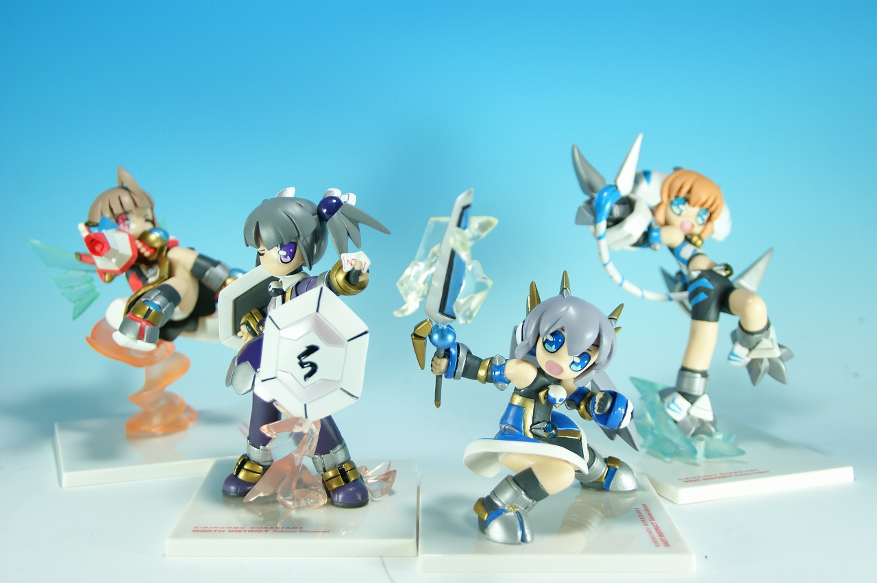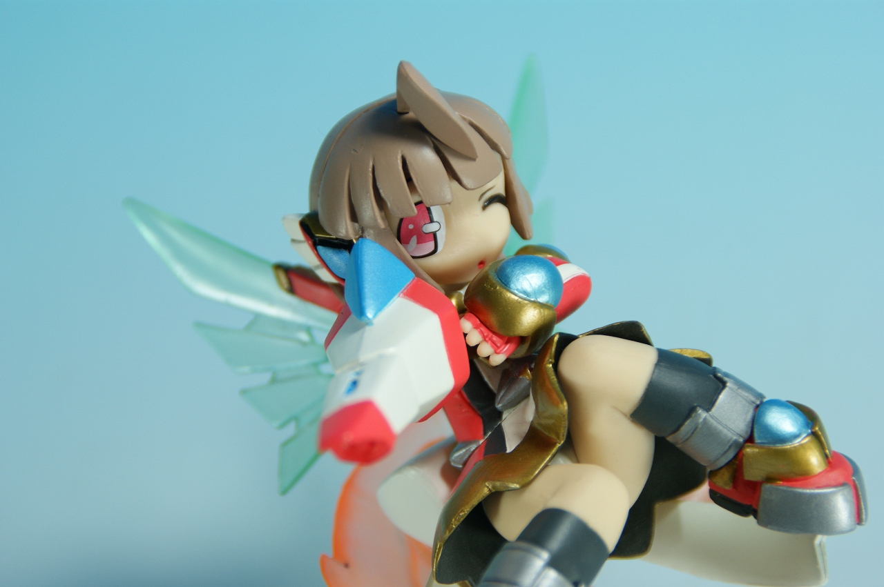 ボークスから発売の「モエコレPLUS No.05 魔想志津香」をお迎えしました。 このお嬢さんはALICESOFT から発売されている「Rance IV -ゼス崩壊-」のキャラクターであり、 「ランス -Rance- キャラクター人気投票」で、堂々第1位に輝いての立体化です。 ちなみに、「Rance IV -ゼス崩壊-」は私の積みゲー置き場(魔窟)に鎮座されていますので、 キャラクター認知はかなり薄いかなぁ? と思っていたら、「鬼畜王ランス」にも出演していたことを思い出しました。 結構、ALICESOFT でも古参の娘さんだったんだなぁ。 思い出した「鬼畜王ランス」じゃ1996年発売なのか・・・って、 そんなに過去の作品でしか思い出せないなんて・・・。 もしかして、オイラのエロゲブランクは相当根が深い?orz まぁ、人気キャラであるし、なかなか種類多くは立体化されない(キャラが多すぎ) ALICESOFT のキャラクターなので予約購入と相成りました。 まずは、パッケージ。 帽子に合わせた青色や背景の魔方陣が特徴です。 背景の魔方陣はベースにも描かれています。 では、ぐるりと一周。 ちょっと気の強い魔法使いの女の子のイメージが、よく伝わります。 また、軽く腰にそえた左手、帽子の庇をつまむ右手から、プライドの高さを感じます。 アップにしてみると、 マニキュアがつけられているのがわかります。ちょっとしたワンポイントがいいですね。 さらに、 きっちり立っているのではなく、微妙に内股で、足の裏がべったり地面に着いているのではないので、 女の娘らしさが、、さりげなく引き立っているのかも。 お顔アップで。 パッケージからも判るとおり、パーツ変更が可能なので、 上着と帽子、襟巻きが着脱可能なので 大分すっきりします。 また上着がなくなったのですっきりした印象です。 夏場はこの衣装に変更して飾りたいなぁ。 右腕が後ろにまわり、邪魔な上着もなくなったので、 お胸の膨らみも、横からしっかりと。 バランスのいいスタイルです。 お顔アップで うーん、カワユス。さすが人気No.1。 個人的には帽子だけは付属のバージョンもいいかと。 お顔アップで。 こんなアレンジもいいですねぇ。 おまけ おパンツは、あっさりした純白でした。 (*ノノ) キャッ 以上、「モエコレPLUS No.05 魔想志津香」でした。 ボークスの塗装は全体的にあっさり目で統一してるんでしょうかねぇ? 結構好きな雰囲気です。 目立たないけれど、上着や帽子にクリア素材を使ったりと派手さで勝負はしない感じかな? また、裏面に記載されているセリフ、 「ふ、ふんっ。別にアンタのために立体化されたんじゃ、 ないんだからね(テレッ)。」 には、いろんな意味で衝撃を受けましたよ。テンプレ杉~。でも、それがいい。 唯一の難点は、髪の毛パーツの分割線ぐらいかな? ここだけは、どうしても気なりましたが、総評では合格かと。 あとは、もうちょっと購入しやすくして欲しいよボークスさん!しかも元日って・・・・・。 かなり前に発売されていた、ソリッドシアターの「麒麟町ぼうえいぐみ」(中古)を購入してきました。 |